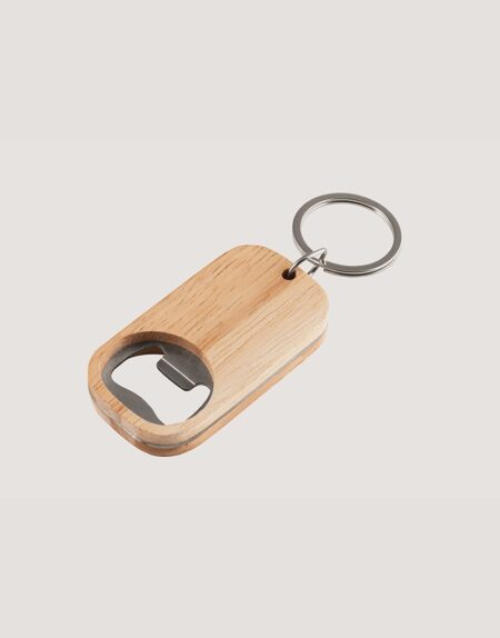 Chaveiro em Aço Inox e Bambu com Abridor de Garrafas
