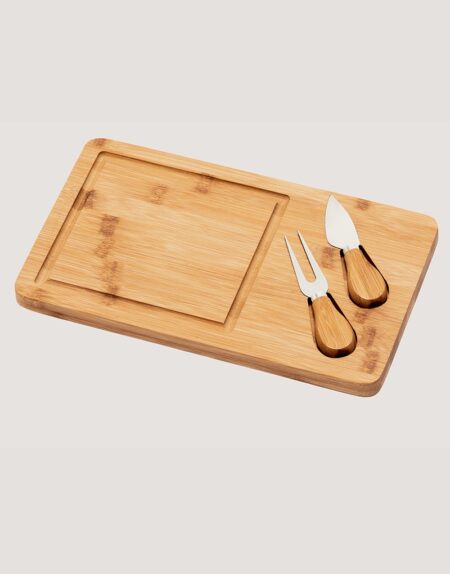 Tábua de Queijos em Bambu com 2 Utensílios em Bambu e Aço Inox