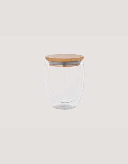Copo em Vidro Isotérmico de Paredes Duplas Isolada a Ar com Tampa em Bambu