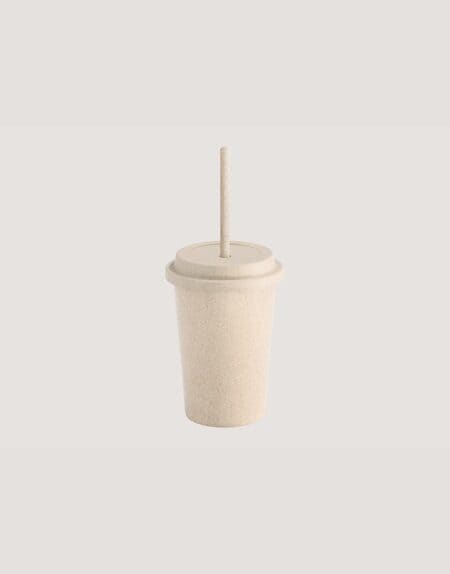 Copo de Viagem em Fibra de Bambu com Tampa e Canudo Retrátil