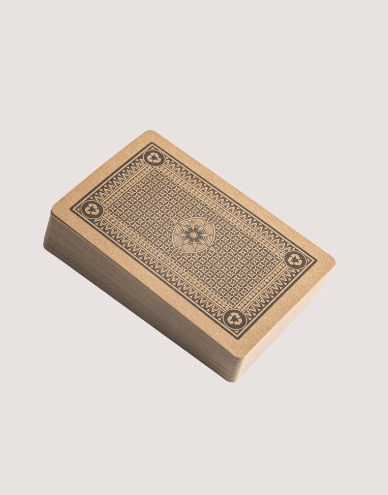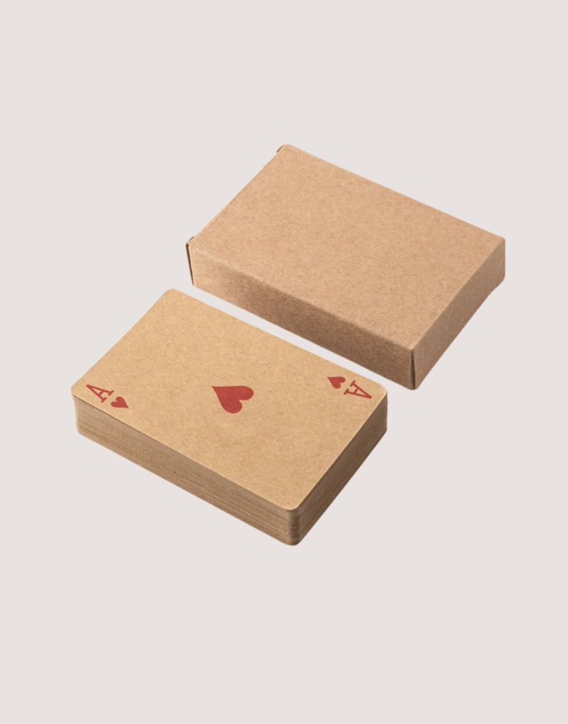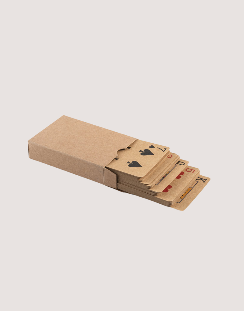 Baralho com 54 cartas clássicas em papel kraft, proveniente de gestão florestal sustentável, ideal para compartilhar bons momentos com amigos e família. Fornecidas em caixa presente de papel kraft reciclado. A cor e o resultado da impressão nos materiais naturais pode variar entre produtos.