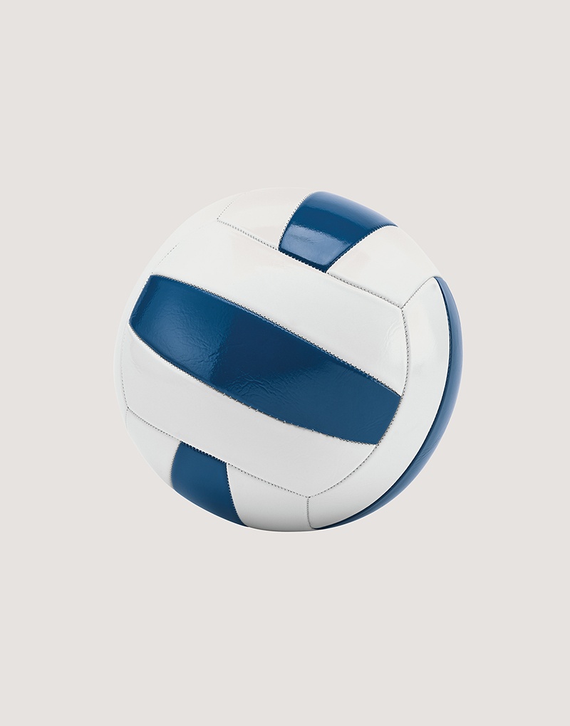 Bola de voleibol em PVC com faixas em azul e branco. Produto certificado de acordo com a portaria Inmetro nº302 de 12/Jul/2021. Tamanho 5