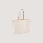 Sacola em 50% algodão, alças de 62 cm, 30% algodão reciclado e 20% poliéster reciclado (220 g/m²)