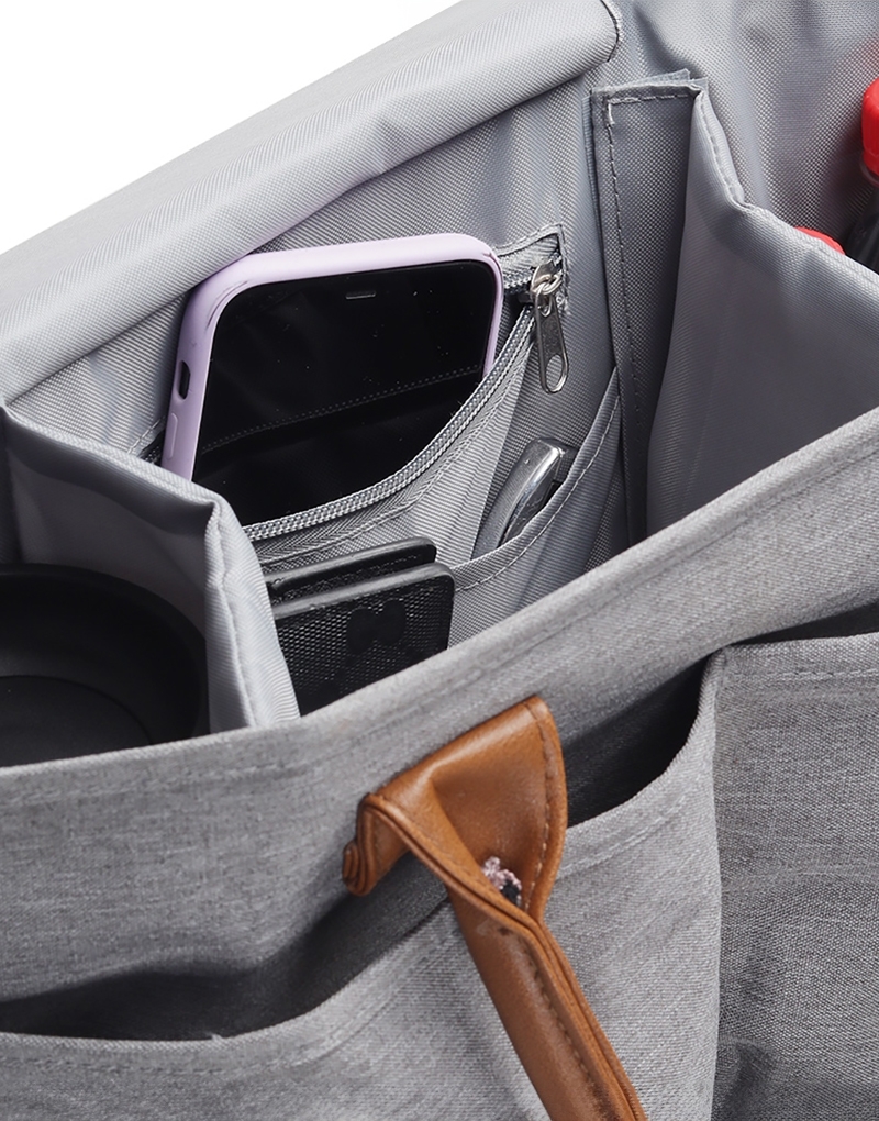 Fabricada em lona resistente à água, conta com compartimentos internos e bolsos externos para facilitar a organização. Possui alças reforçadas e fundo removível que garante estrutura firme e praticidade no uso.