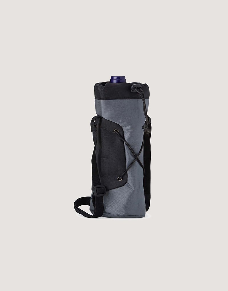 Descrição: Capa para garrafa em nylon pequena com alça.