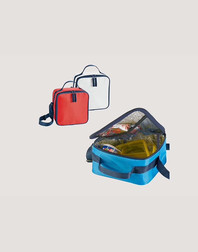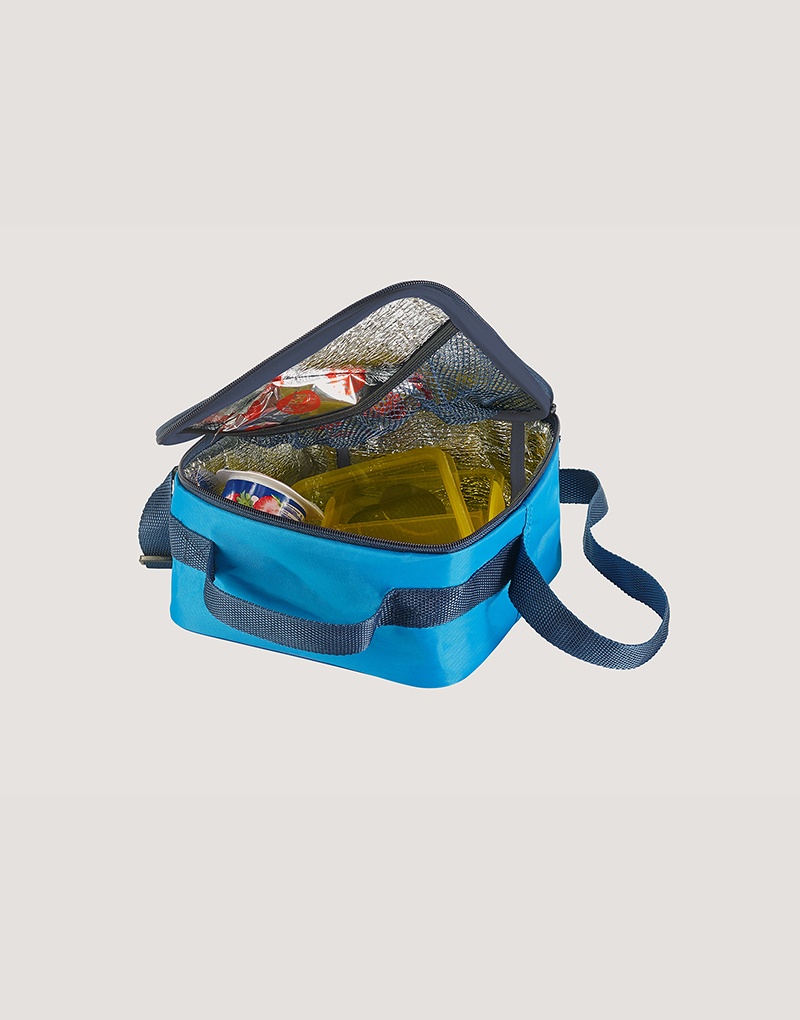 Bolsa térmica em 600D com bolso interior em tela mesh e alça ajustável em webbing. Com capacidade até 4,5 L, tem o tamanho ideal para levar refeições para o trabalho ou escola. Certificação EU Food Grade.