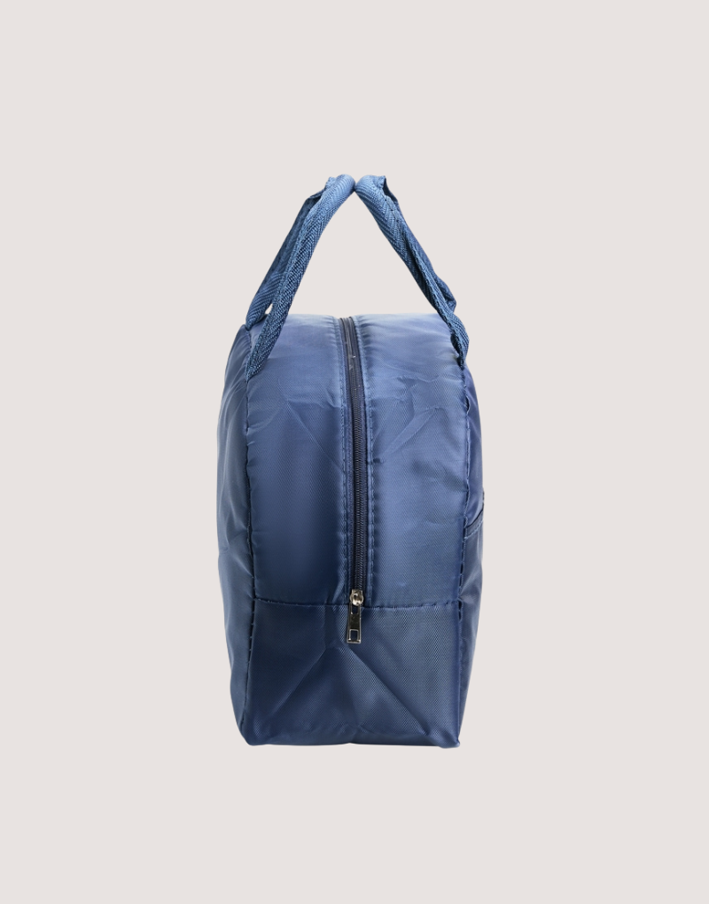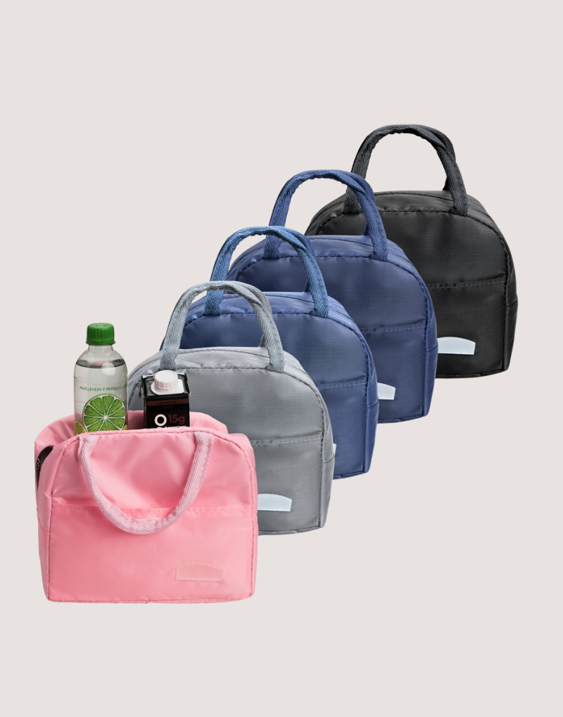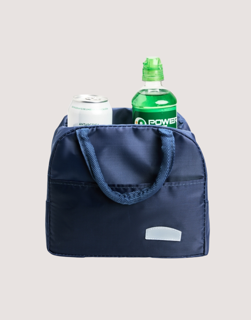 Bolsa térmica leve confeccionada em Oxford impermeável e capacidade máxima de 5 litros. Possui revestimento interno em folha de alumínio, o que oferece a conservação da temperatura de alimentos e bebidas por mais tempo. Conta também com bolso frontal com plaquinha fixa em plástico e par de alças em nylon para transporte.