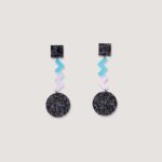 Brinco com três formas geométricas sobrepostas, formando uma composição vertical moderna. Ideal para personalizações criativas em cada parte do brinco, oferecendo destaque e movimento ao visual.