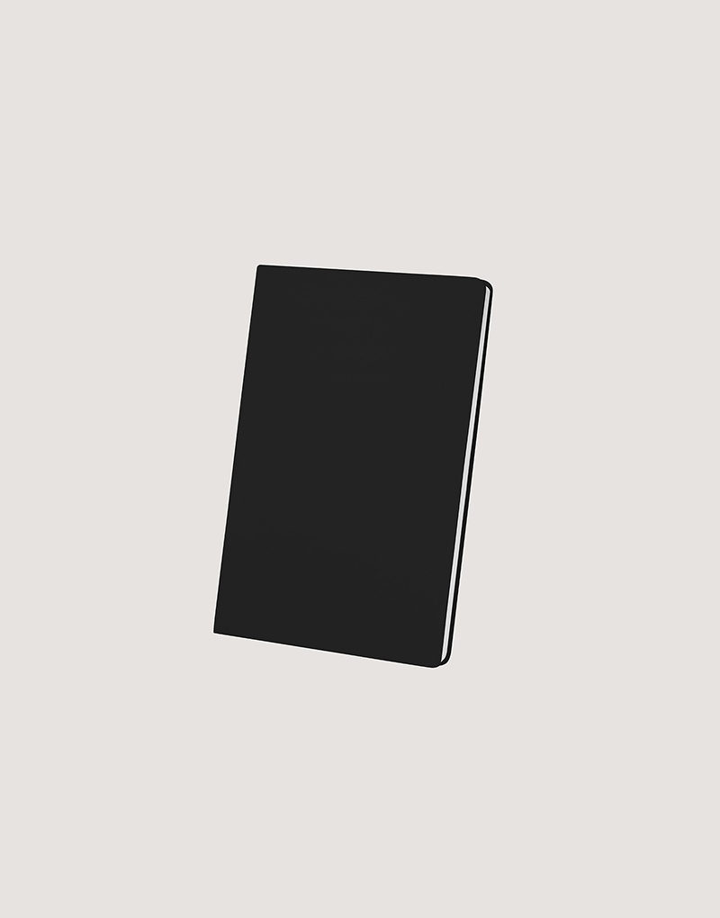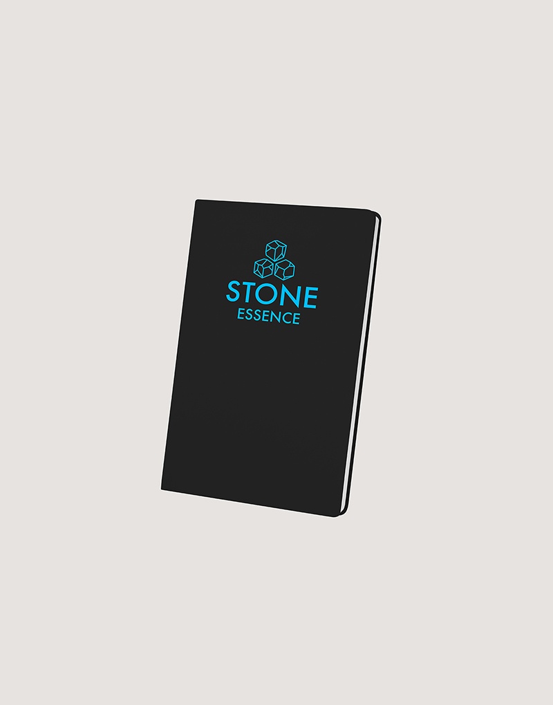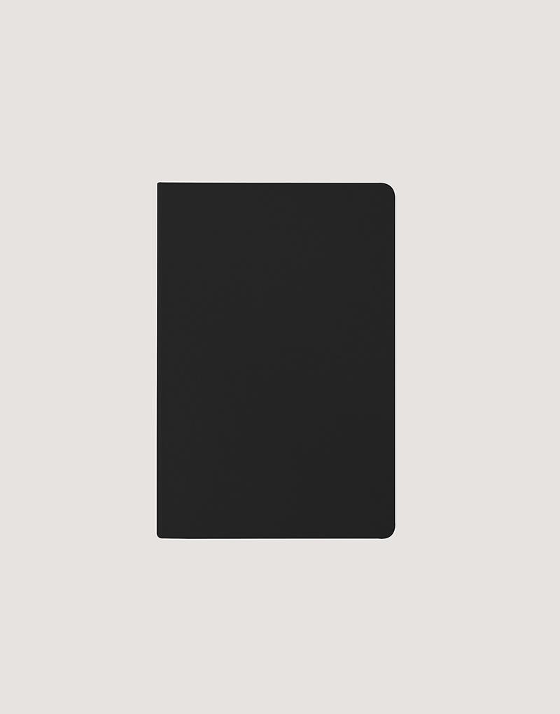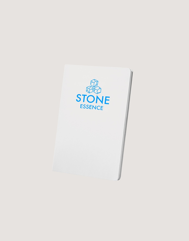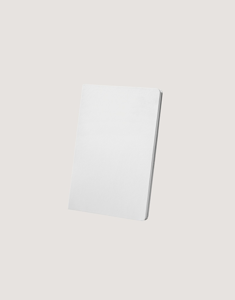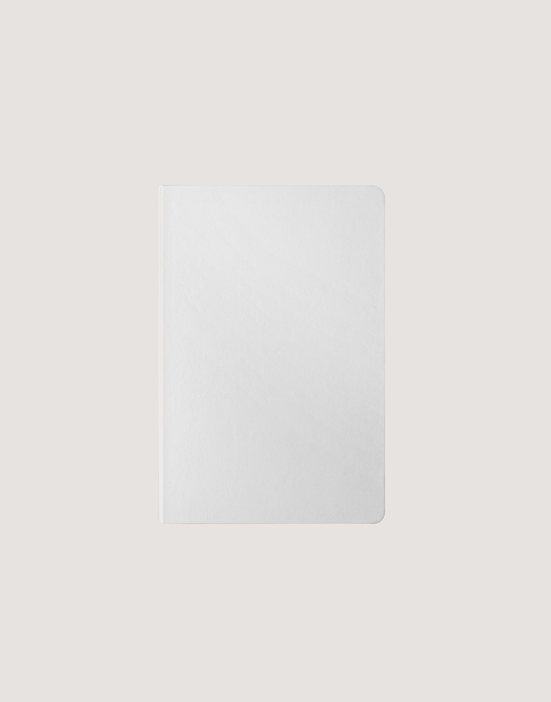 Caderno A5 de capa dura em papel pedra resistente à água. Contém 64 folhas pautadas (120g/m²) também em papel pedra.