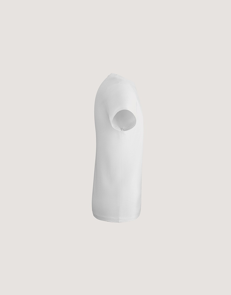 Camiseta unissex de corte regular em malha 100% algodão (165 g/m2) com fio 30/1 misto. Com gola em ribana 1,5×1,5 com fita de reforço e com costura dupla nas mangas, barra de fundo e laterais. Produto contém certificação ABVTEX .