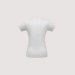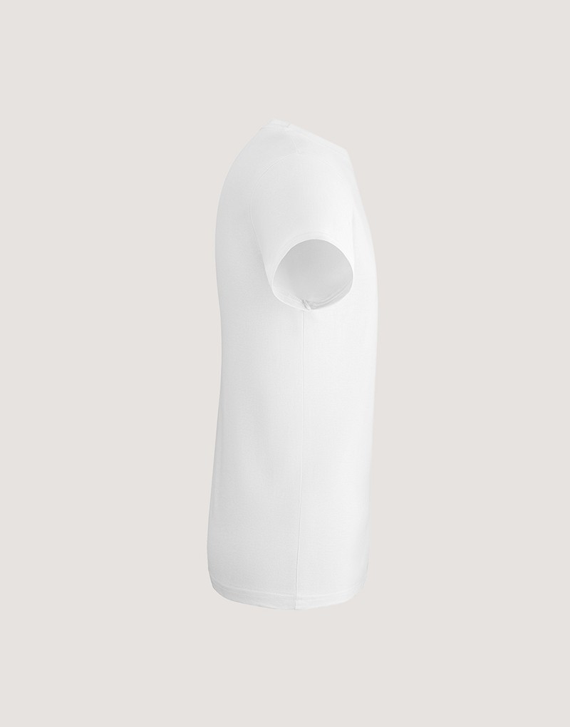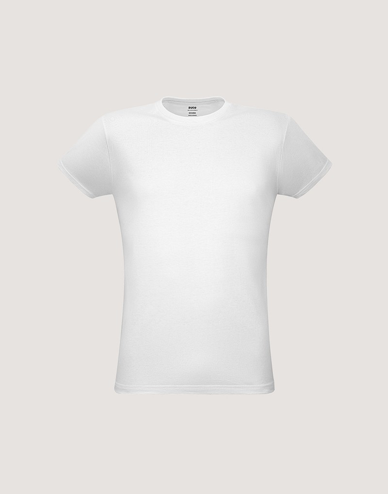 Camiseta unissex de corte regular em malha 100% algodão (135 g/m2) com fio 30/1 misto. Com gola em ribana 1,5×1,5 com fita de reforço e com costura dupla nas mangas, barra de fundo e laterais. Produto contém certificação ABVTEX .