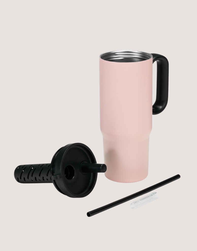 “Caneca térmica em inox 304 com pintura eletrostática, alça lateral em plástico e capacidade de até 750ml. Conta com estrutura de parede dupla e vedação a vácuo para manter a temperatura de líquidos por mais tempo. Possui tampa plástica rosqueável com acesso para canudo, infusor removível e alça para fixação de chaveiro ou gancho. Acompanha canudo plástico para encaixe.”
