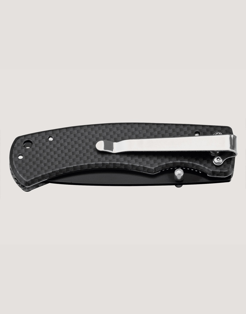 Canivete em aço inox e metal com fecho de segurança e clipe. Fornecido em caixa presente. 97 x 15 x 29 mm | Caixa: 110 x 37 x 20 mm