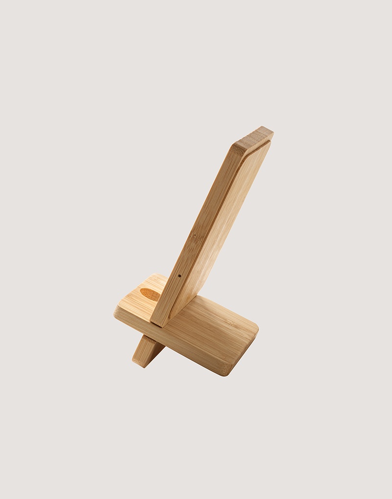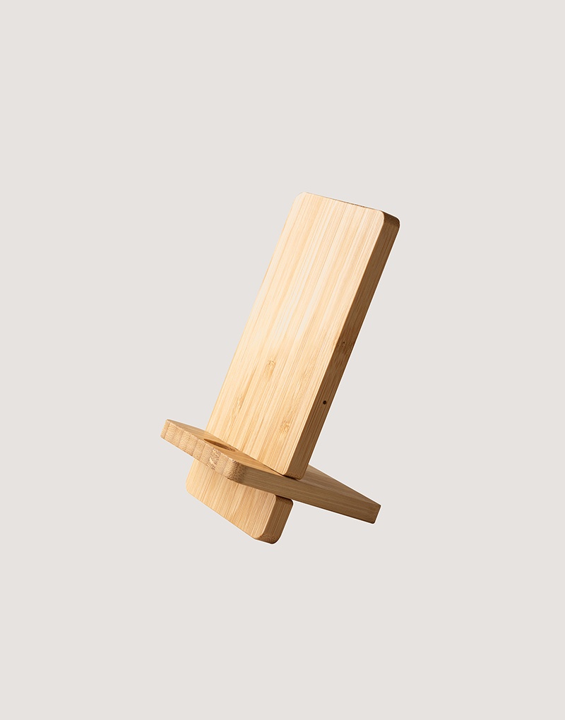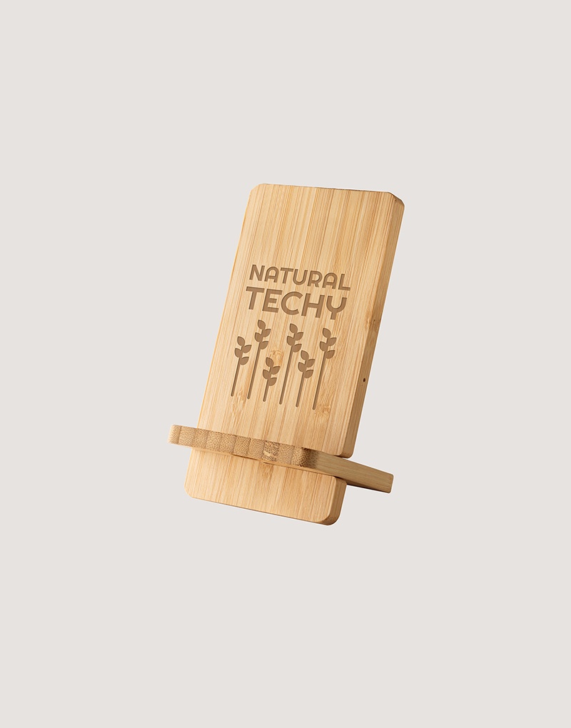 Carregador wireless super rápido e suporte em bambu para smartphone. Possui uma potência de carregamento sem fios máxima de 15W. Compatível com smartphones com tecnologia de carregamento sem fios. O suporte em bambu consiste em 2 partes desmontadas. Incluso cabo USB-C de 1 metro. Fornecido em caixa presente de papel kraft. A cor e o resultado da impressão nos materiais naturais pode variar entre produtos.