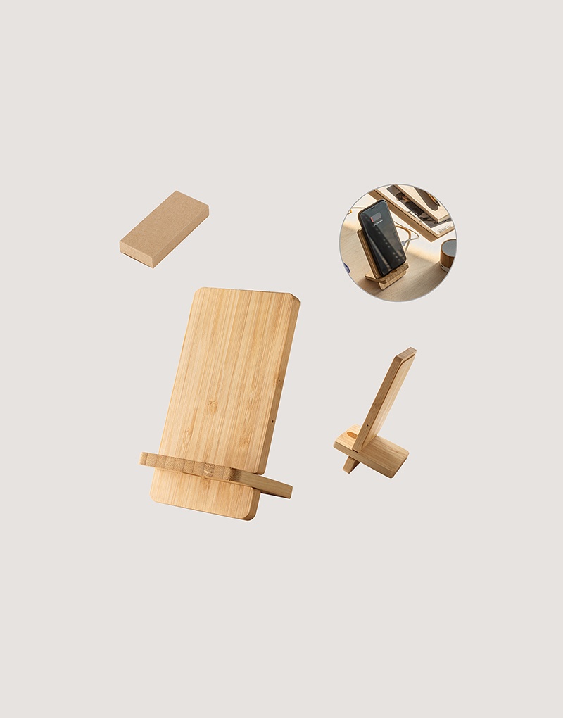 Carregador Wireless Super Rápido e Suporte em Bambu para Smartphone 10 W
