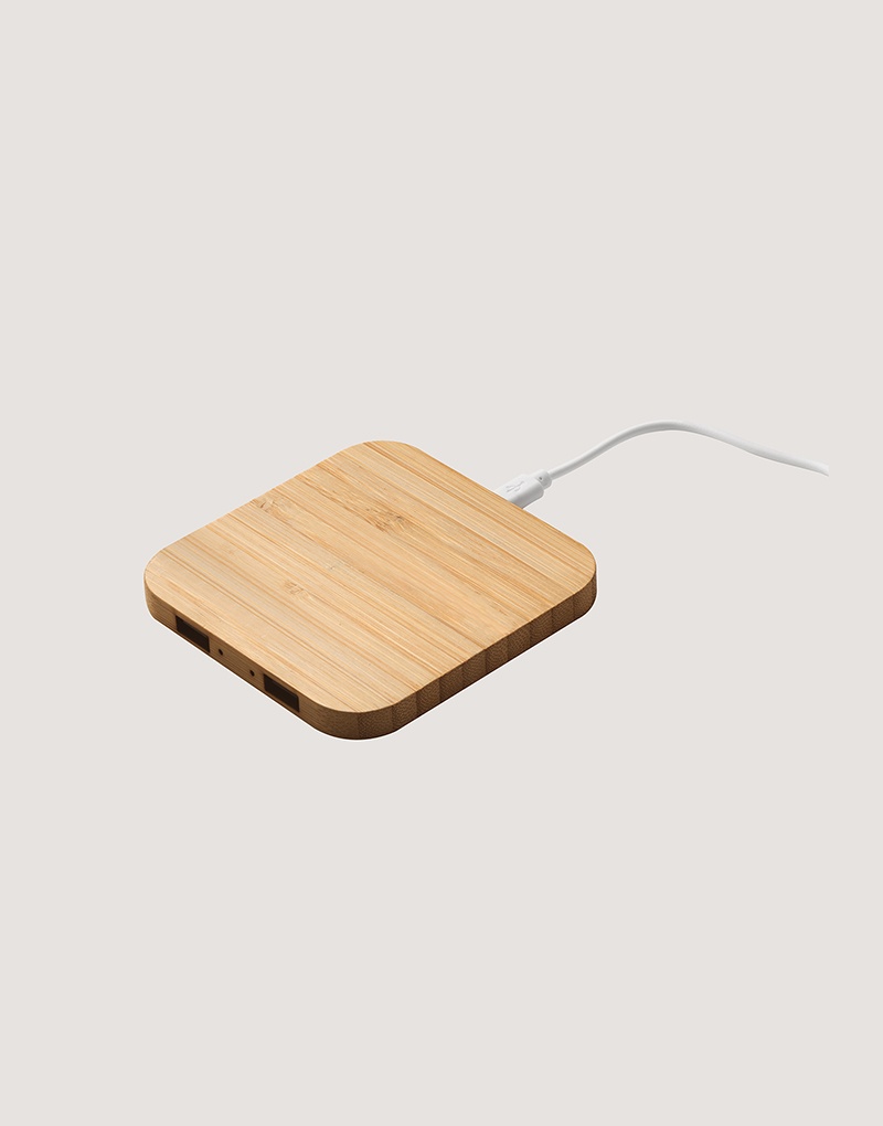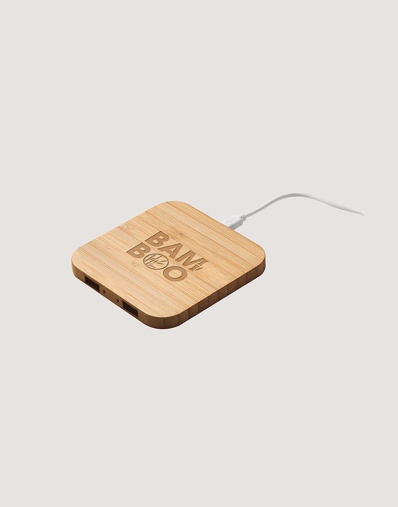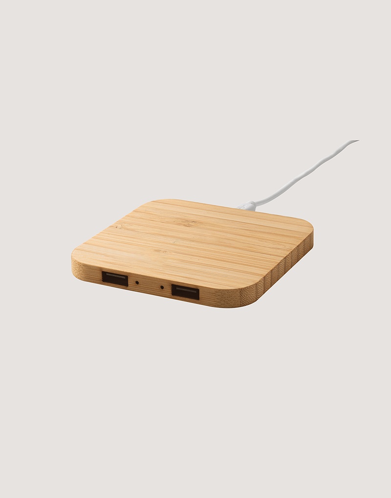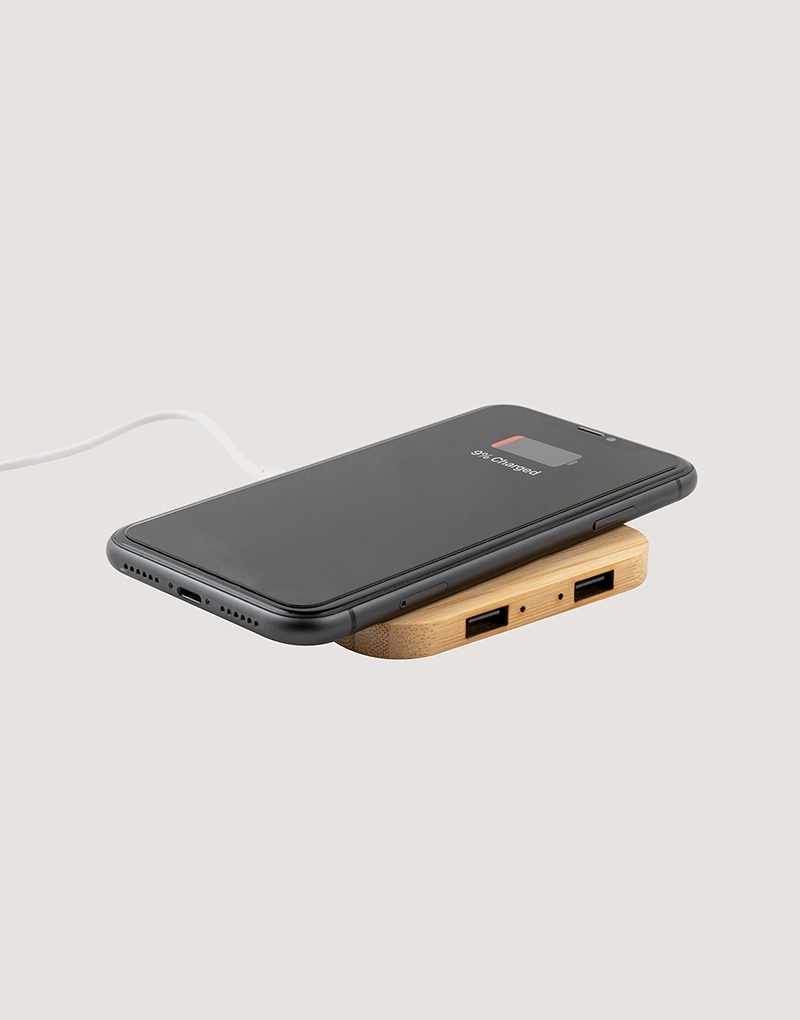 Carregador wireless super rápido em bambu com função hub. Contém uma entrada USB-C e duas saídas USB-A. Possui uma potência de carregamento sem fios de 15W para carregamento super rápido. Compatível com dispositivos com tecnologia de carregamento sem fios. Incluso cabo USB-C. Fornecido em caixa presente de papel kraft. A cor e o resultado da impressão nos materiais naturais pode variar entre produtos.