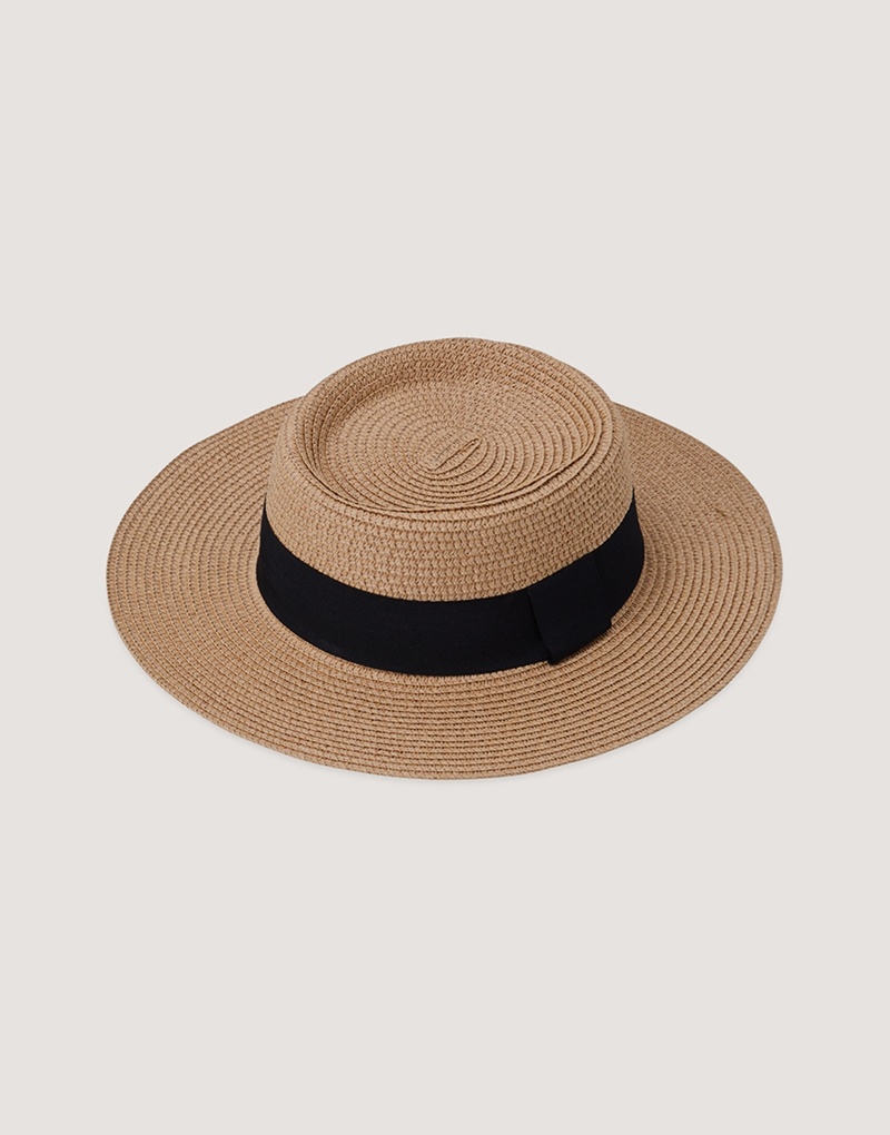 Descrição: Chapéu de palha com aba levemente ondulada e faixa de poliéster fixa, feito em tamanho único com ajuste interno.