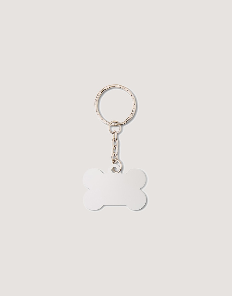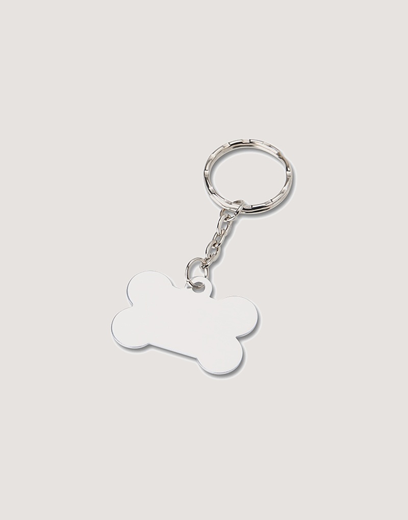 Descrição: Chaveiro metálico fosco formato osso. Frente e verso liso.