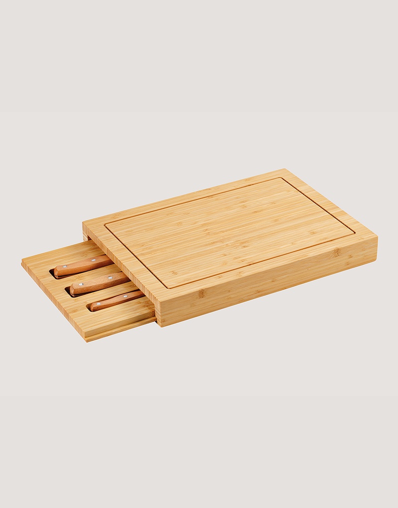 Conjunto de Tábuas em Bambu com 3 Facas Inclusas