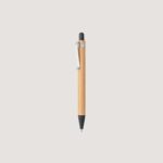 Esferográfica em alumínio 94% reciclado com detalhe em bambu no clipe. Escrita em azul. Fornecida em bolsa de oferta. A cor e o resultado da impressão nos materiais naturais pode variar entre produtos.
