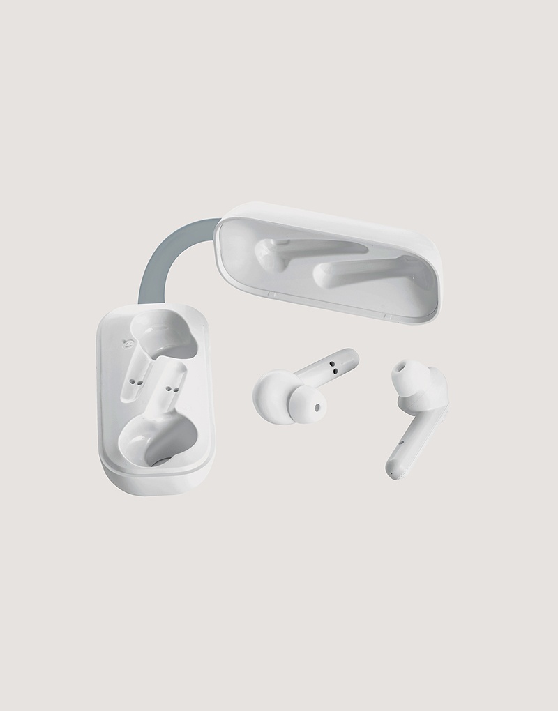 Fone de ouvido wireless stereo em ABS com transmissão sem fios BT v5.0 e autonomia aproximada de 3 horas. O estojo de carregamento, com uma bateria 250 mAh, é também em ABS e contém uma presilha em silicone que permite transportar e carregar os fones de forma fácil e confortável. Produto com cabo de carregamento micro USB incluso. Fornecido em caixa presente.