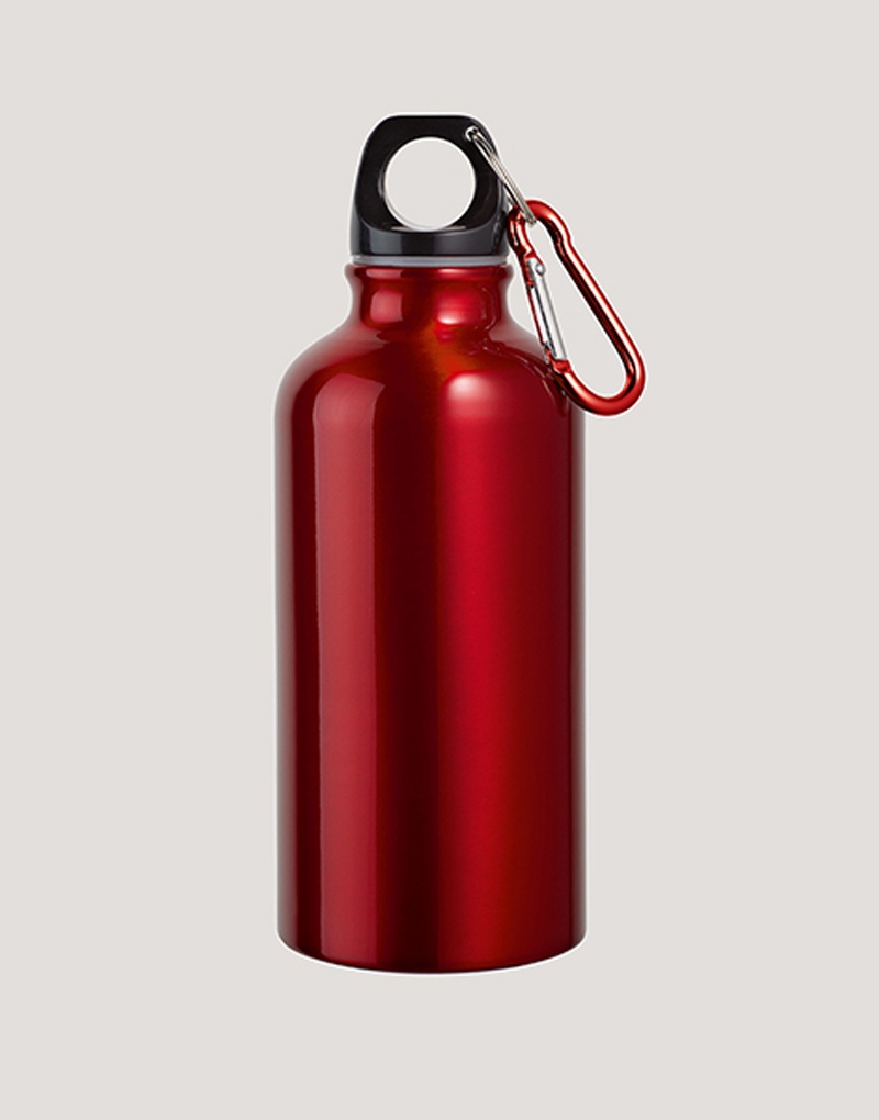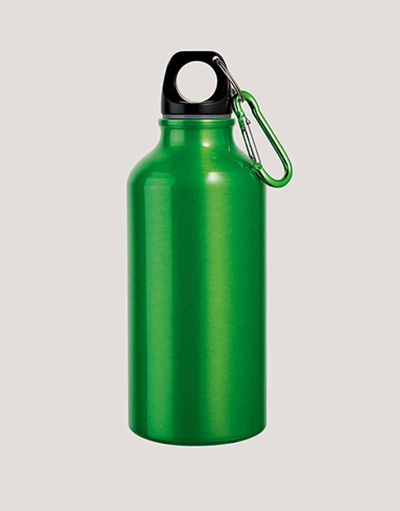 - Garrafa Esportiva em Alumínio com Acabamento Metálico e Mosquetão 400 mL