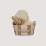 Esse kit banho traz 6 peças para tornar o momento do banho relaxante e mais especial. Ele inclui uma escova de madeira para os cabelos, uma pedra-pomes (utilizada para esfoliações, principalmente nos pés), um massageador de madeira facial, duas esponjas e, para completar, um balde de madeira com alça de corda. Perfeito para quem busca uma sensação incomparável de cuidado e relaxante durante o banho.