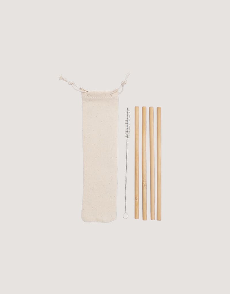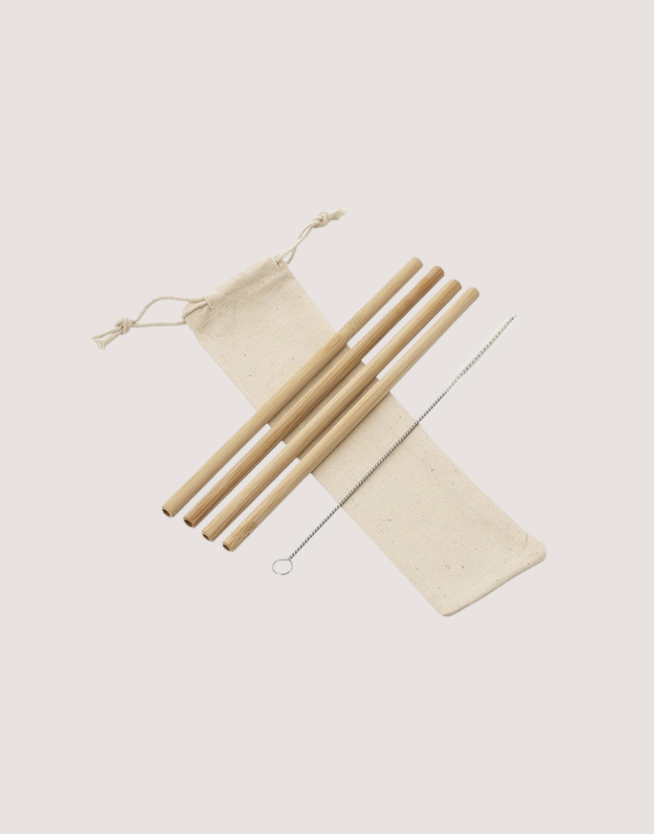 Kit canudo de bambu reto e escova de limpeza em estojo. Contém 4 canudos de bambu e escova de limpeza com ponteira plástica. Acompanha estojo de algodão reciclado.