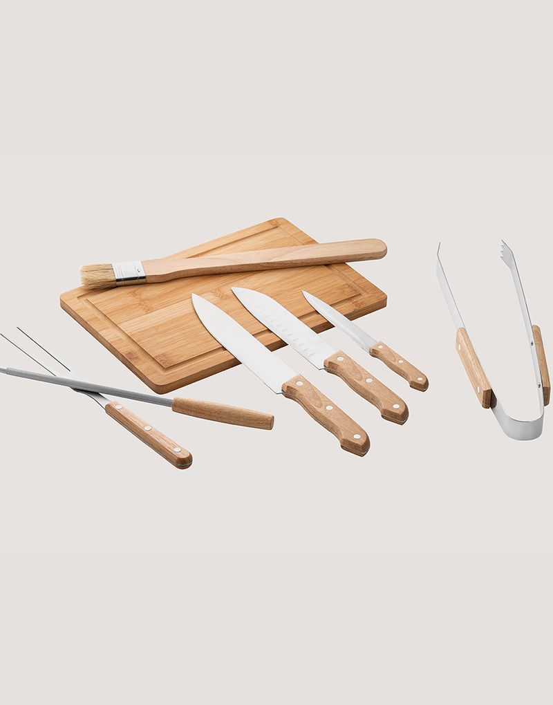 Kit Churrasco em Estojo de PU e 210D com Tábua em Bambu e 7 Utensílios em Aço Inox e Madeira de Seringueira27 de junho de 2025