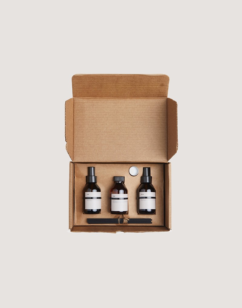 Descrição: Home Spray e difusor em frasco de vidro de 100ml, com essência de Avelã, e Água de Lençol em frasco de vidro de 100ml, essência de Alecrim. Acompanha um tampa com rosca e furo para o frasco de vidro do difusor e 6 varetas.