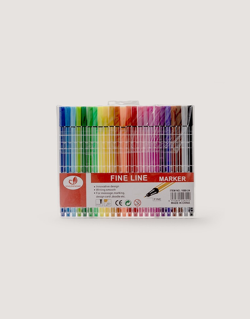 Descrição: Kit canetinhas coloridas com traço fino, ponteira de 0.4mm. Contém 24 unidades.