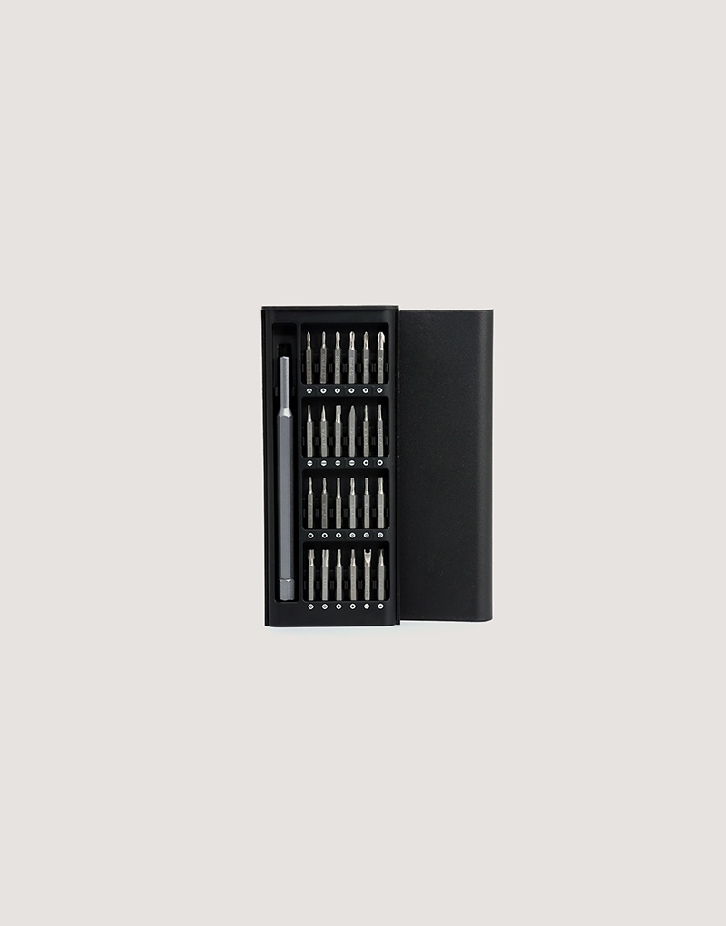 Descrição: Kit ferramenta com 25 peças em estojo plástico com tampa de encaixe. Contém: 1 chave extensora rotatória para conexão das ponteiras, 1 ponteira Tri-Wing, 5 ponteiras Phillips, 4 ponteiras fenda, 10 ponteiras Torx, 2 ponteira Allen, 1 ponteira spanner e 1 ponteira fenda triangular.