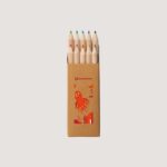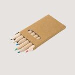 Caixa de cartão com 6 mini lápis de cor. Produto certificado de acordo com a portaria Inmetro nº423 de 8/out/2021.