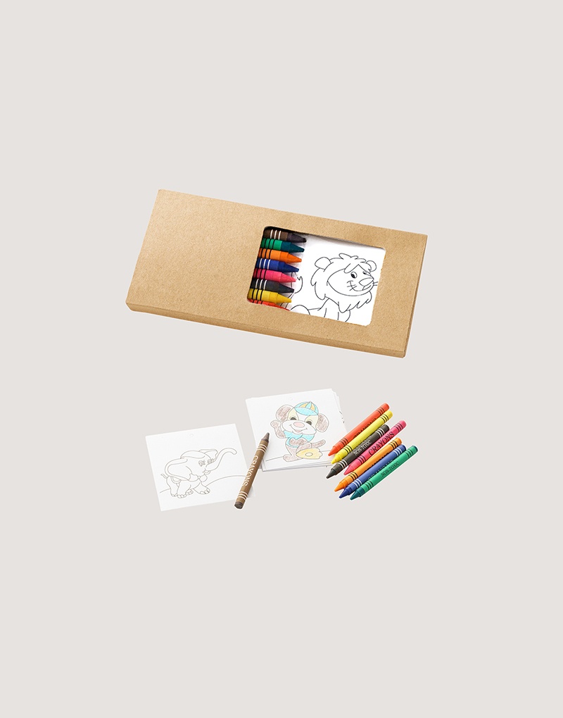 Kit para pintar em caixa de cartão. Incluso 8 gizes de cera e 8 cartões diferentes para pintar e pendurar. Produto certificado de acordo com a portaria Inmetro nº423 de 8/out/2021.