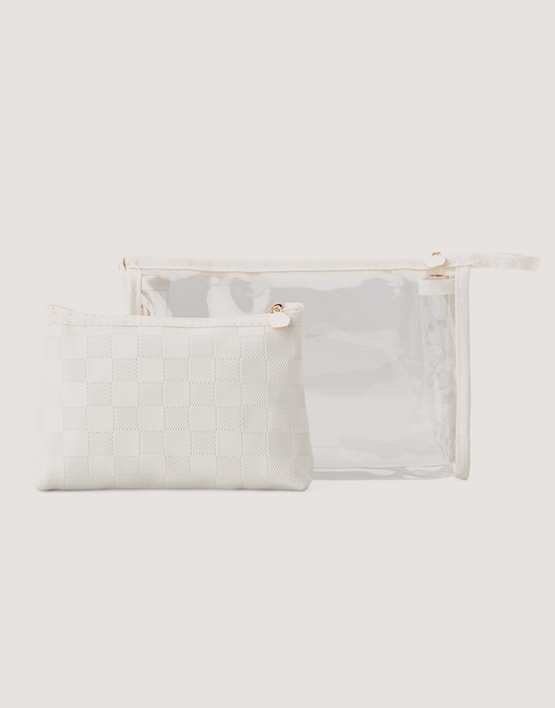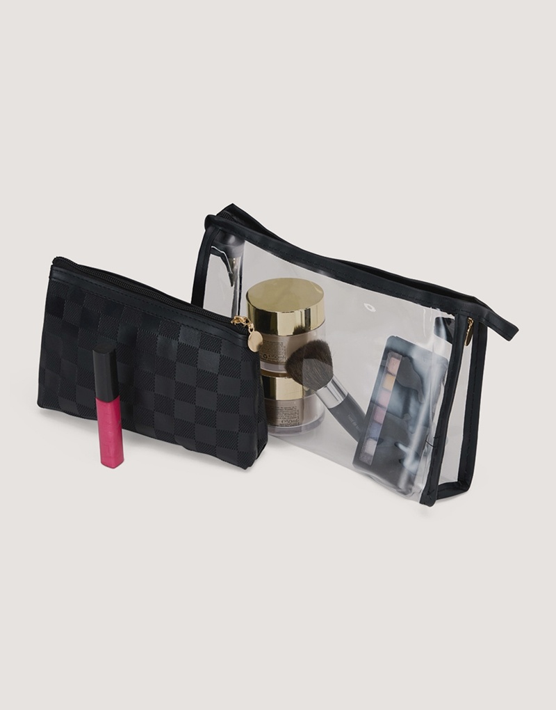 Kit Necessaire Duas Peças em PU e PVC Xadrez