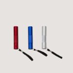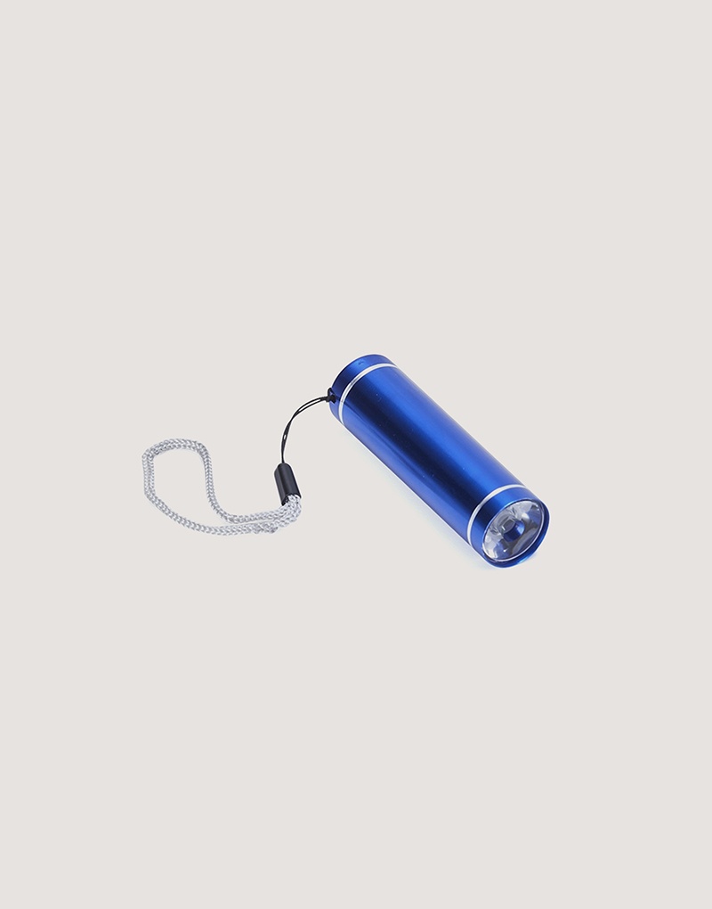 Descrição: Lanterna de alumínio com 1 led e botão de acionamento emborrachado. Alimentada por 3 pilhas AAA, a lanterna acompanha pilhas de teste e cordão de nylon para transporte.