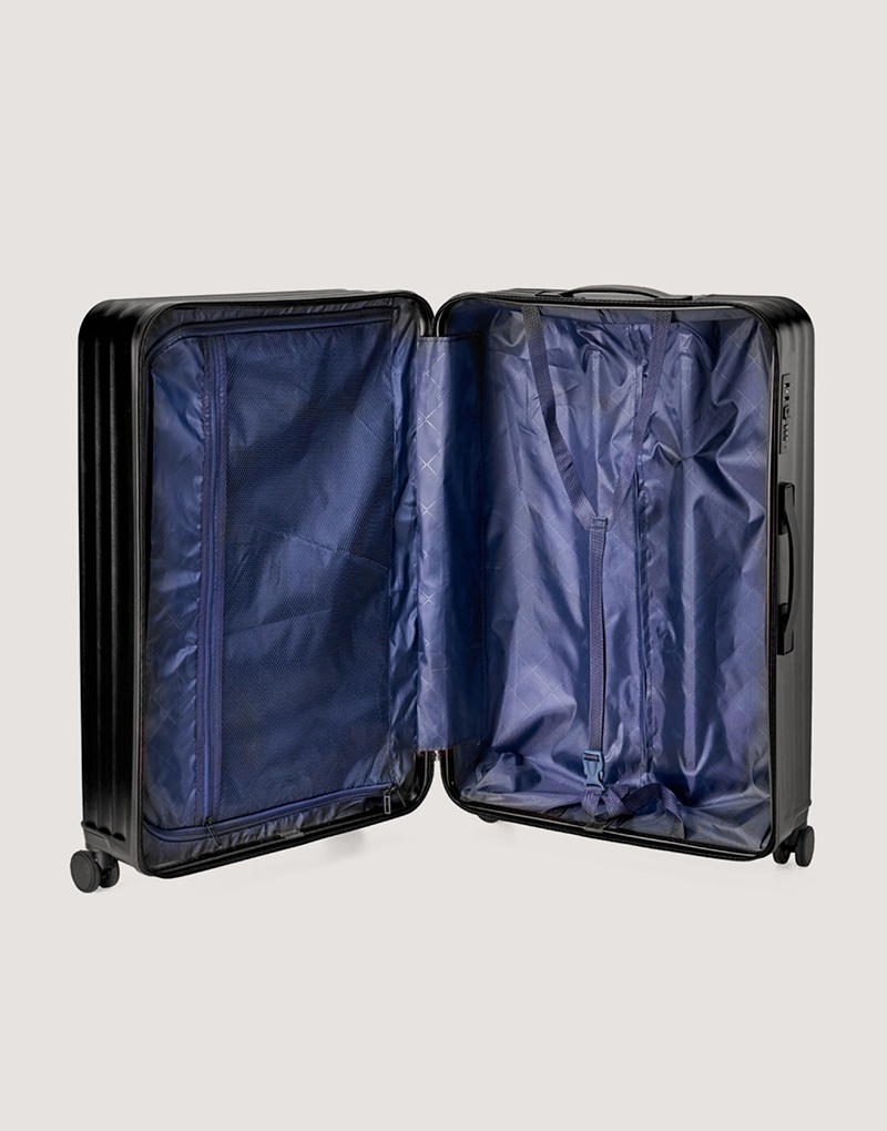 Descrição: Pensada para tornar as viagens mais práticas e confortáveis, esta mala combina estrutura resistente com design exclusivo e espaço para personalização. Leve e ideal para acompanhar suas viagens, ela conta com espaço interno com divisória, que contém bolso em tela e outro espaço com cinta compressora para manter tudo no lugar. Além disso, conta com 4 apoios laterais para descanso e 4 rodas com giro 360°, oferecendo facilidade de locomoção em qualquer direção. Seu puxador ergonômico ajustável, 2 alças de mãos e cadeado TSA garantem máxima proteção e mobilidade. A escolha perfeita para quem busca uma mala espaçosa, fácil de manusear e que proporciona praticidade e segurança durante as viagens.