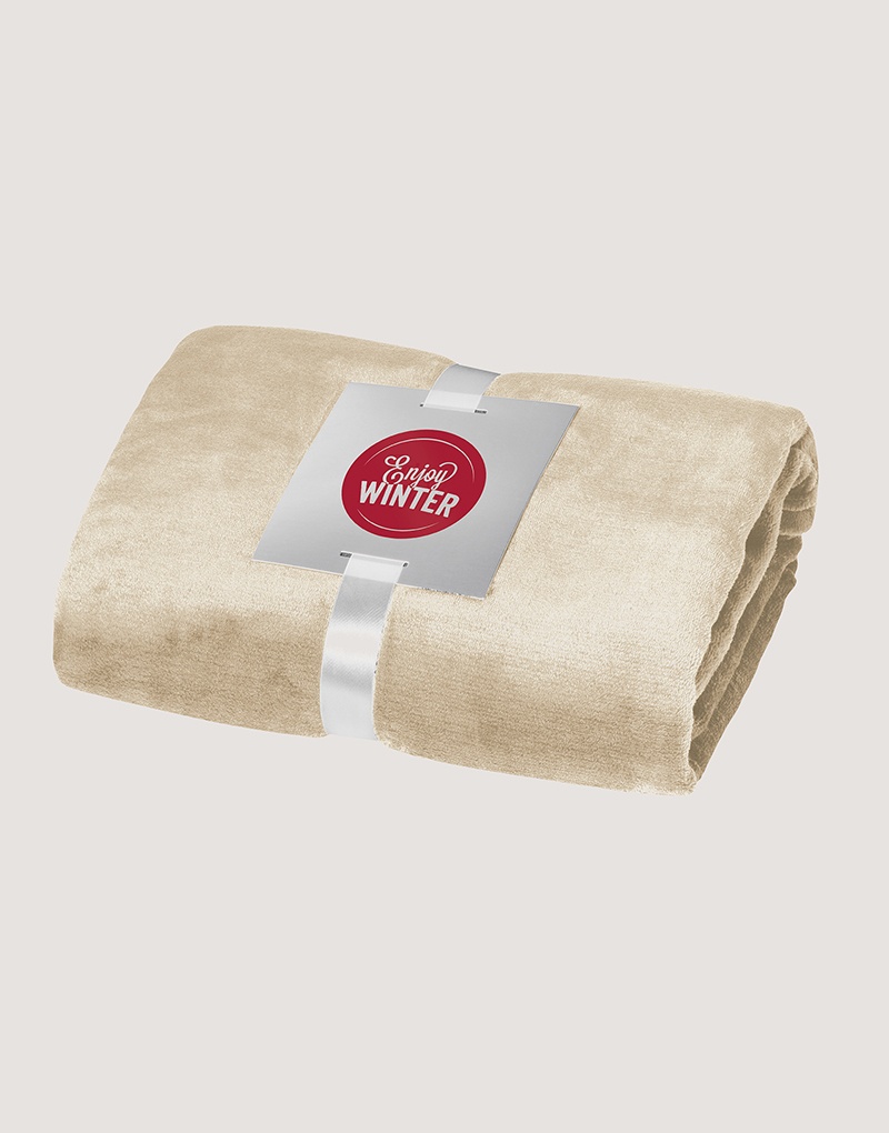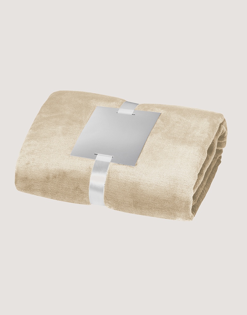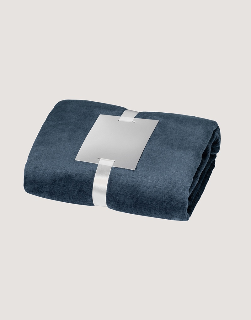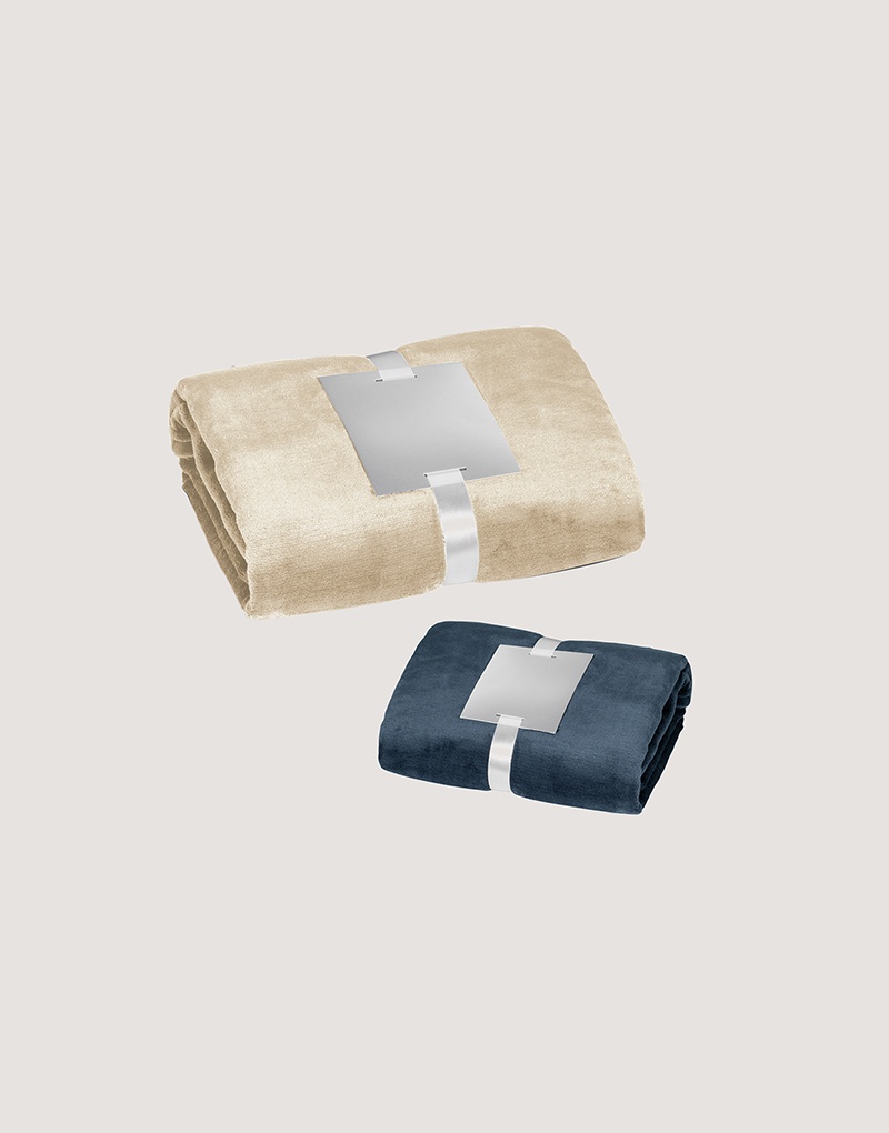 Manta em tecido polar (240 g/m²) com acabamento aveludado e tratamento anti-pilling. Incluso uma fita acetinada e cartão para personalização. Produtos entregues em separado.