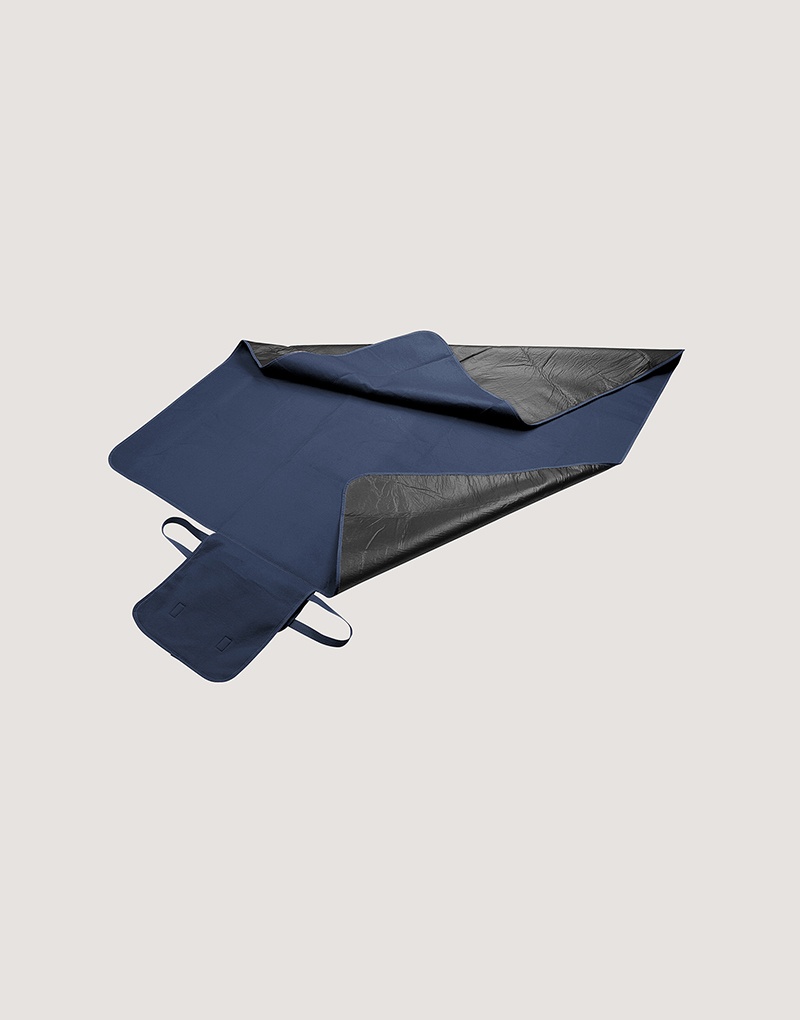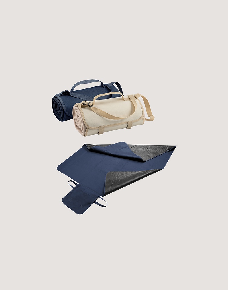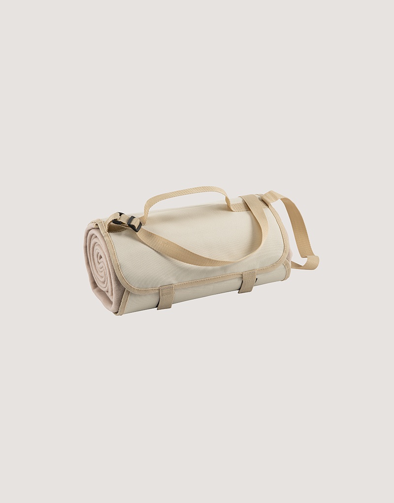 Manta de tecido polar (160 g/m²) forrada a EPE, com pega e alça ajustável.