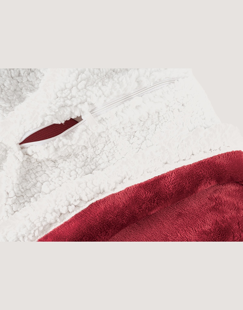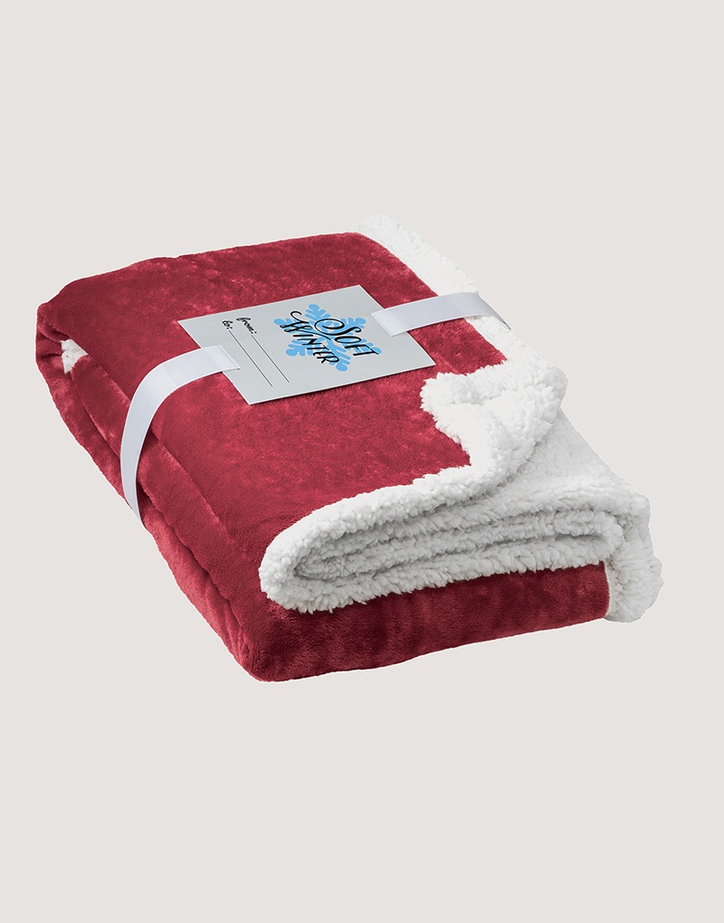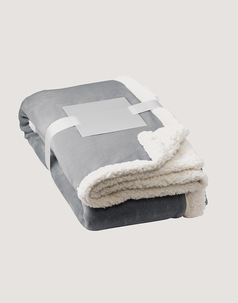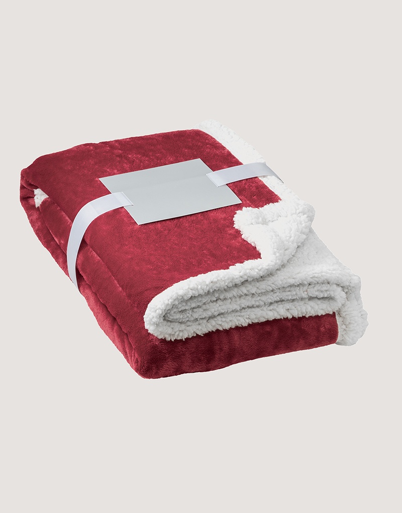Manta reversível em tecido polar (190 g/m²) acetinado com forro sherpa (225 g/m²), para um maior conforto. Inclui na parte do forro um zíper para permitir facilmente a impressão. É fornecida com uma fita em cetim com velcro e um cartão personalizável (entregues em separado).