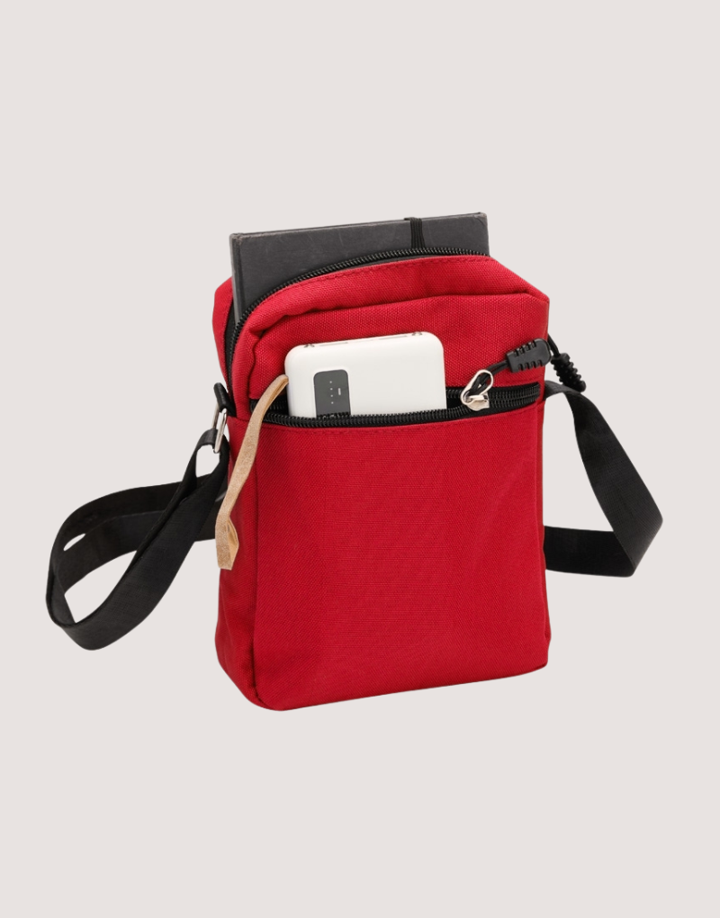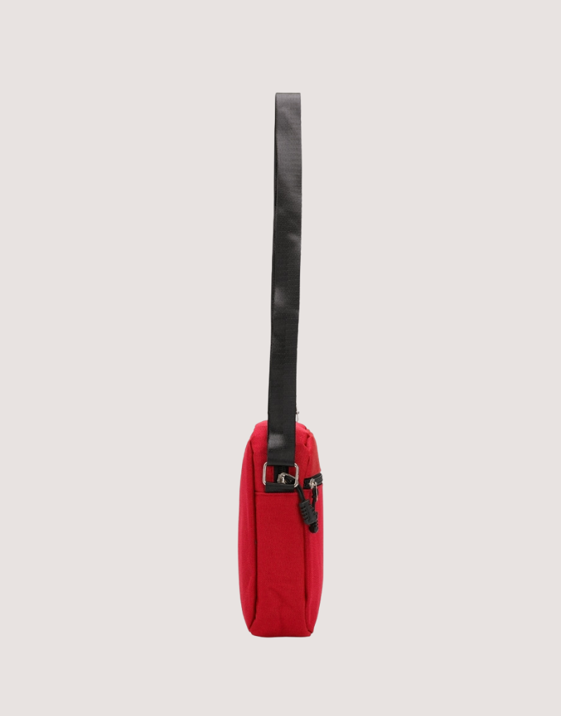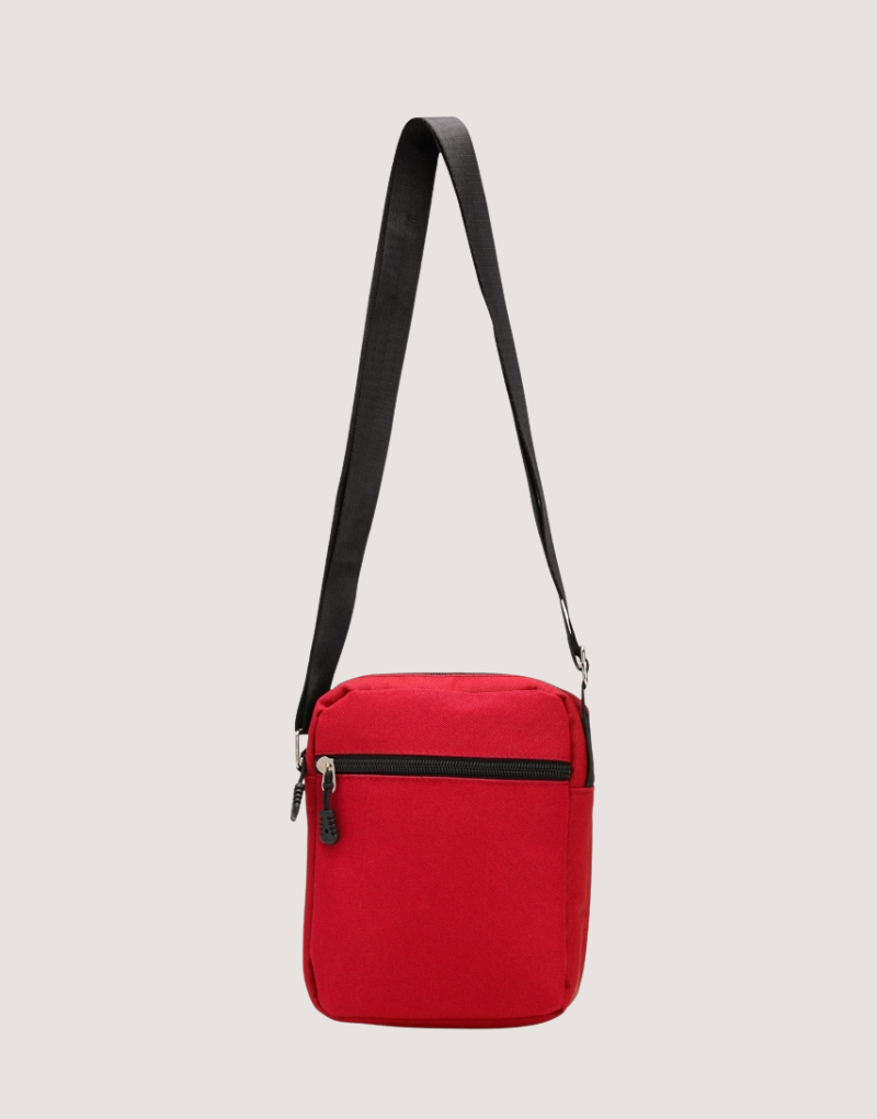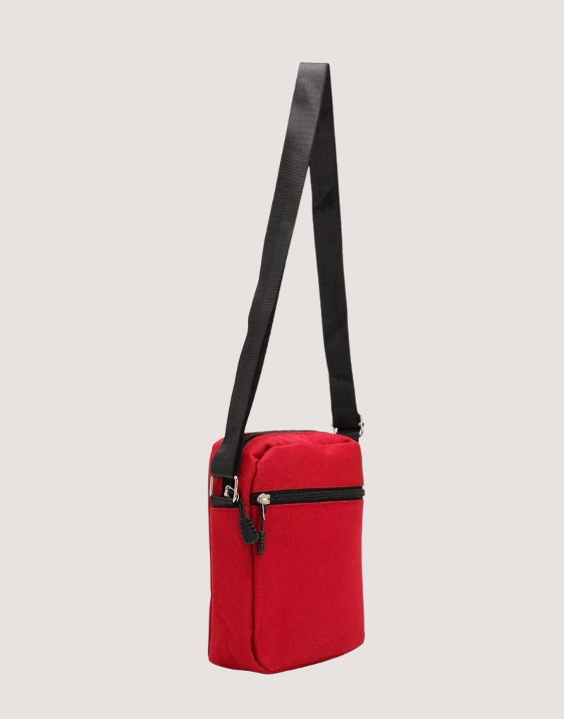 Mini bolsa confeccionada em tecido Oxford resistente à água e alça transversal ajustável em nylon. Possui fechamento em zíper e bolso frontal que facilita a organização de objetos.