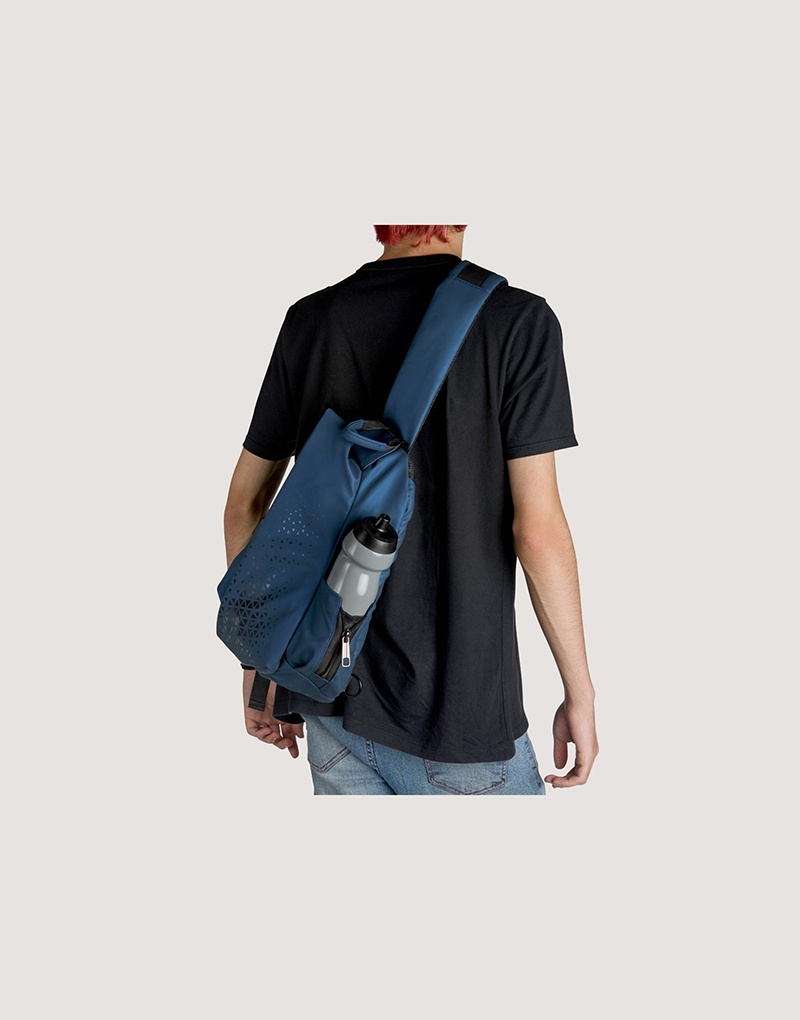 Mochila de ombro de 16 litros com 3 compartimentos. Possui na parte superior abertura com velcro para diversos itens esportivos, como raquetes de tênis, squash e badminton. A mochila contém dois bolsos para tablet, bolso lateral com zíper, divisórias internas para acessórios, alça ajustável, área costal com revestimento espumado e suporte externo USB.