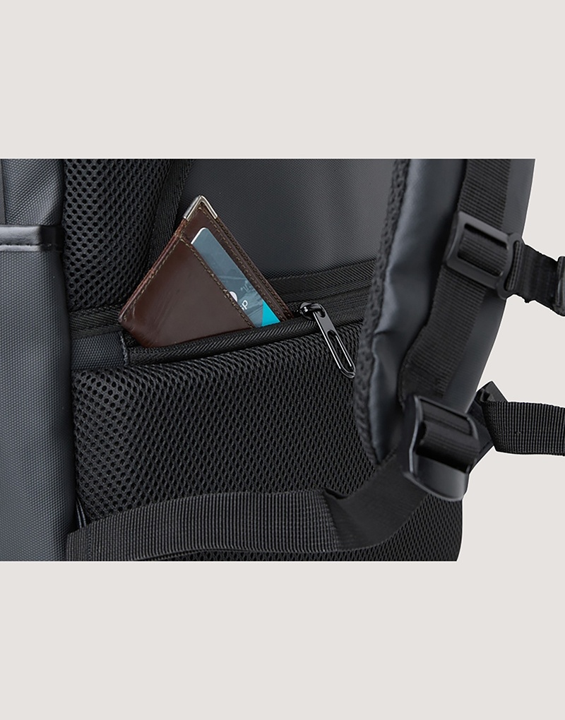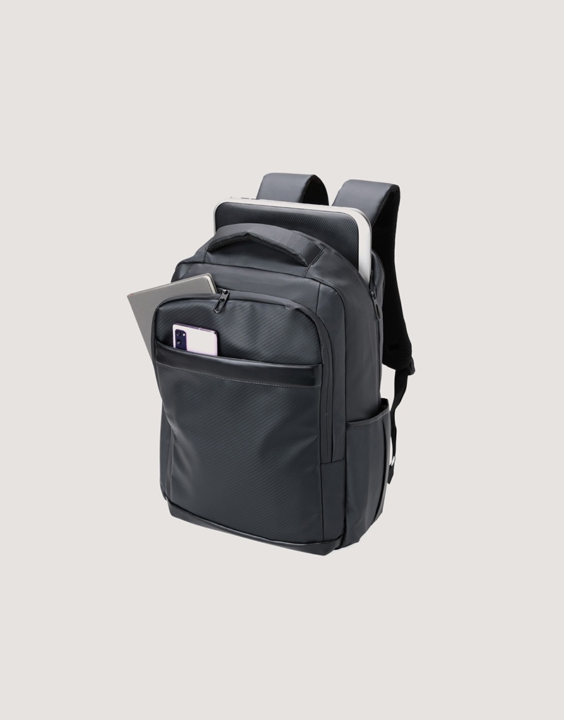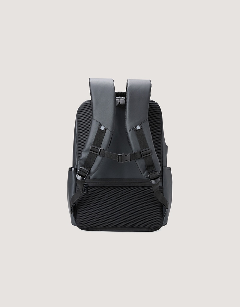 Mochila de 21 litros combina funcionalidade e conforto! Feita em couro sintético resistente à água e com design inteligente, é perfeita para impressionar no mundo corporativo. Conta com quatro compartimentos estratégicos: um frontal, outro com bolsos e divisórias para documentos e canetas, um compartimento antifurto para proteger os itens mais valiosos e um principal, com espaço para notebooks de até 15,6″ e entrada para cabo USB. Além disso, possui plaquinha para personalização exclusiva, dois bolsos laterais, alças reguláveis e acolchoadas que distribuem o peso de forma equilibrada, acabamentos refletivos e uma parte traseira acolchoada, garantindo mais conforto. Para completar, conta com engate para malas de viagem, sendo a parceira ideal além do dia a dia do trabalho. Acompanha plaquinha metálica personalizável.
