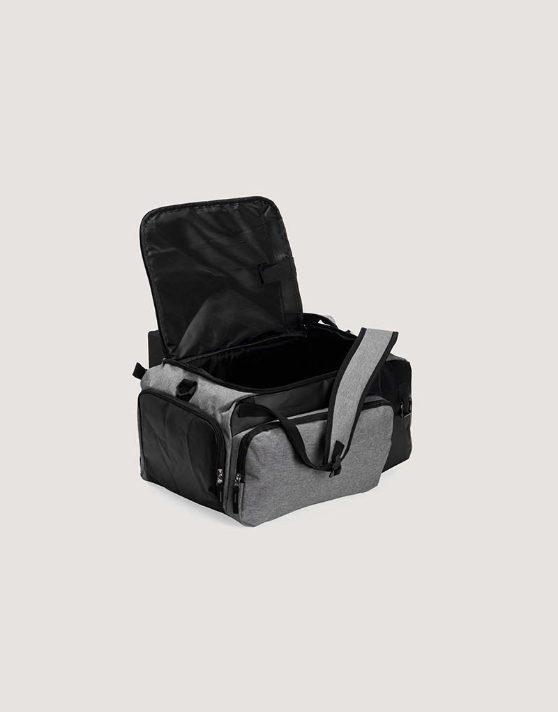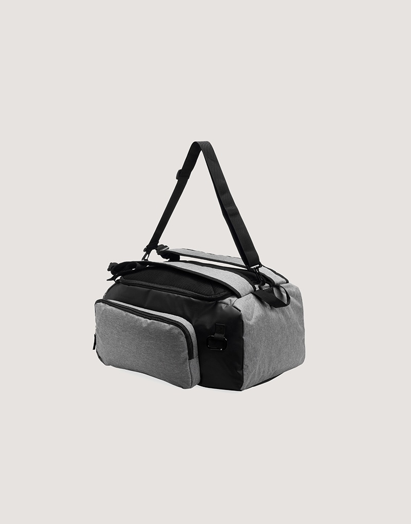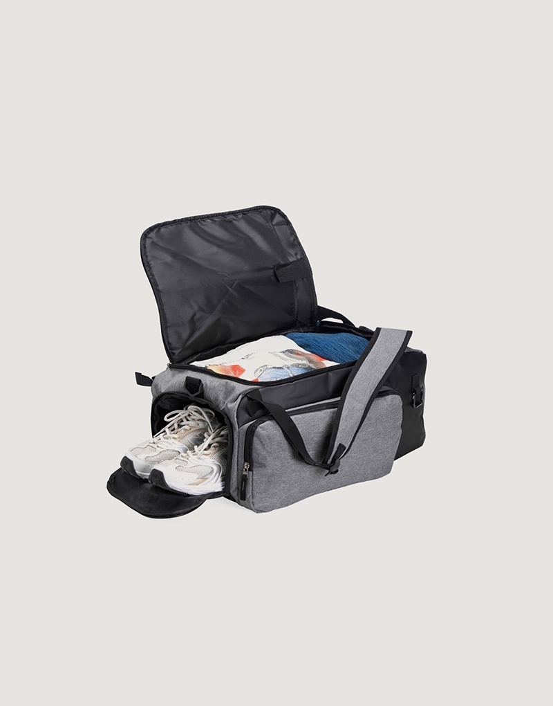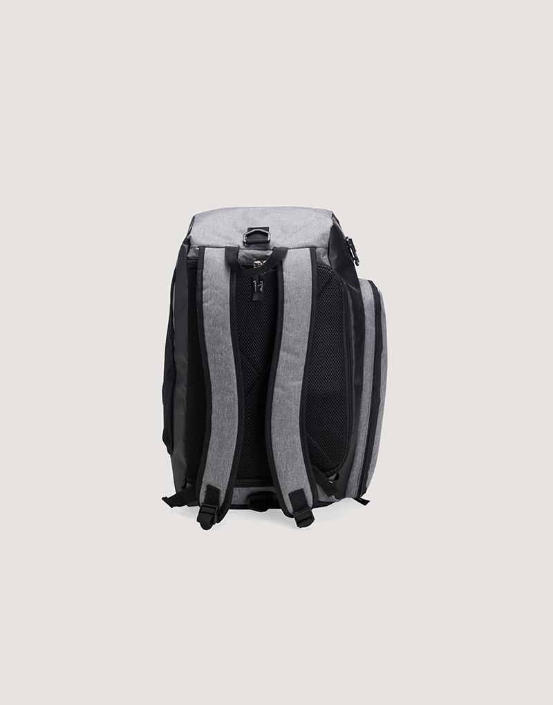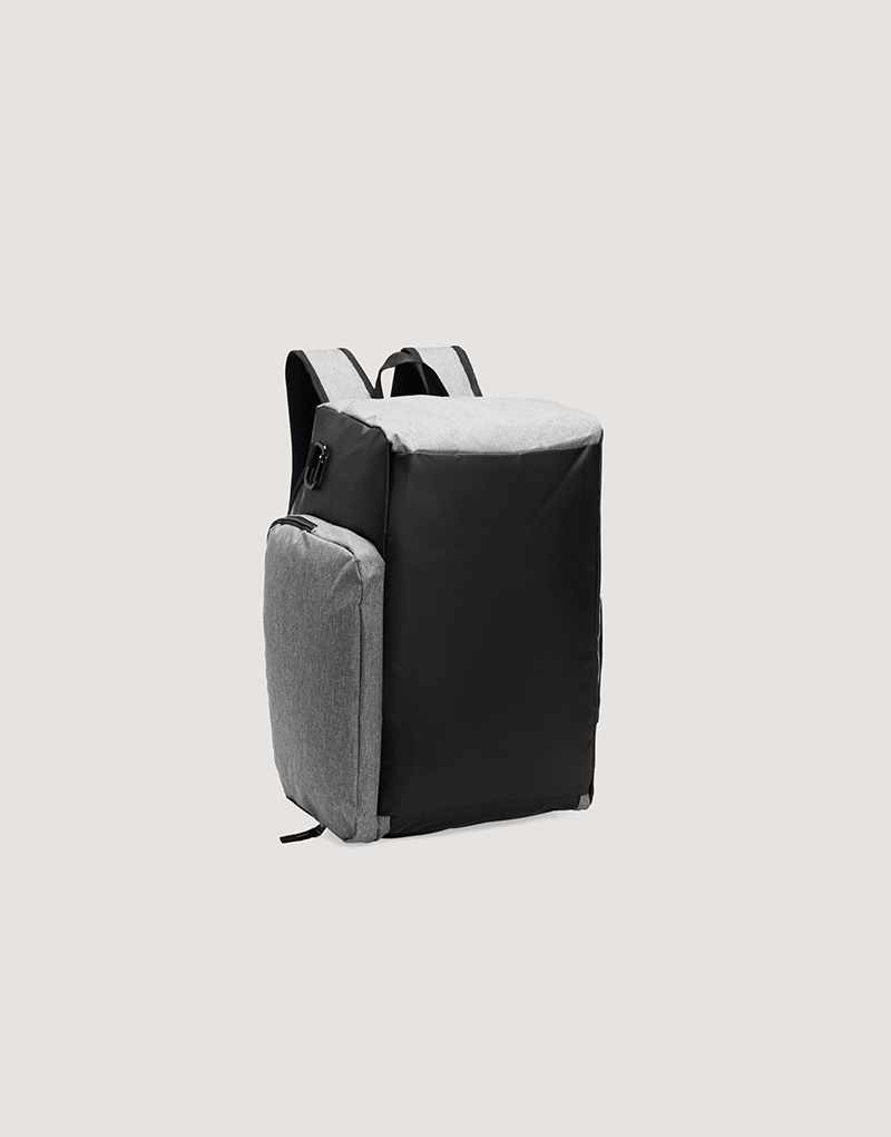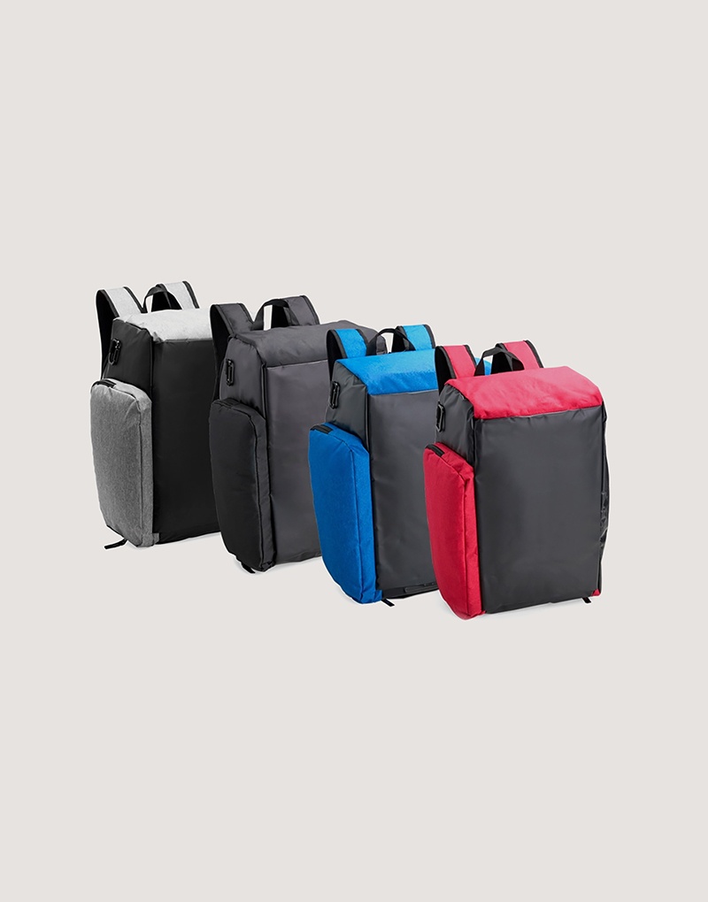 Confeccionada em poliéster resistente à água com detalhes emborrachados. Possui três compartimentos, incluindo bolso para notebook de até 13” e espaço exclusivo para tênis. Conta com bolso lateral, mosquetão de alumínio, alças espumadas e alça transversal regulável para uso também como bolsa.