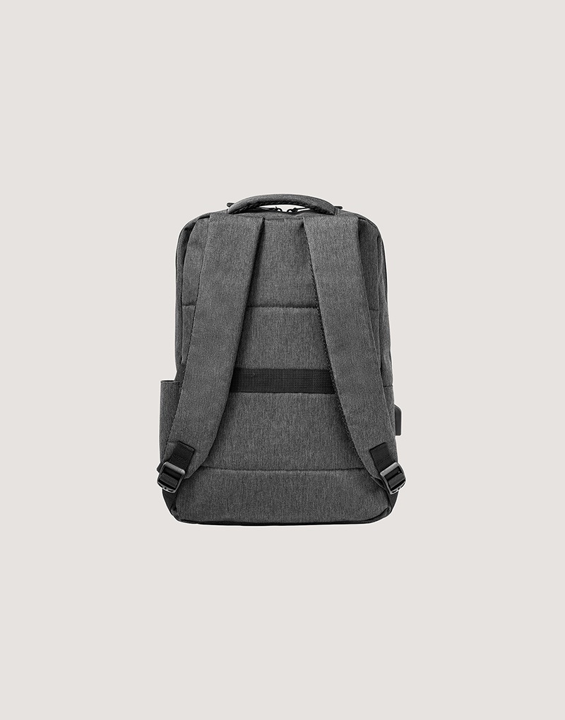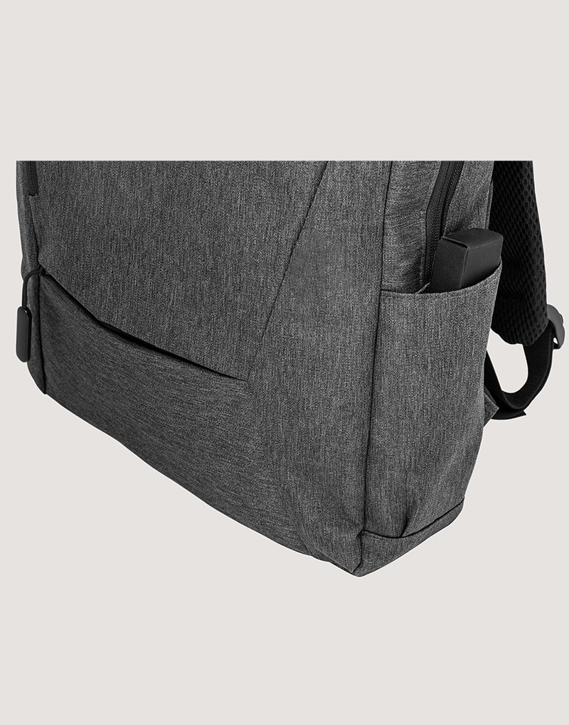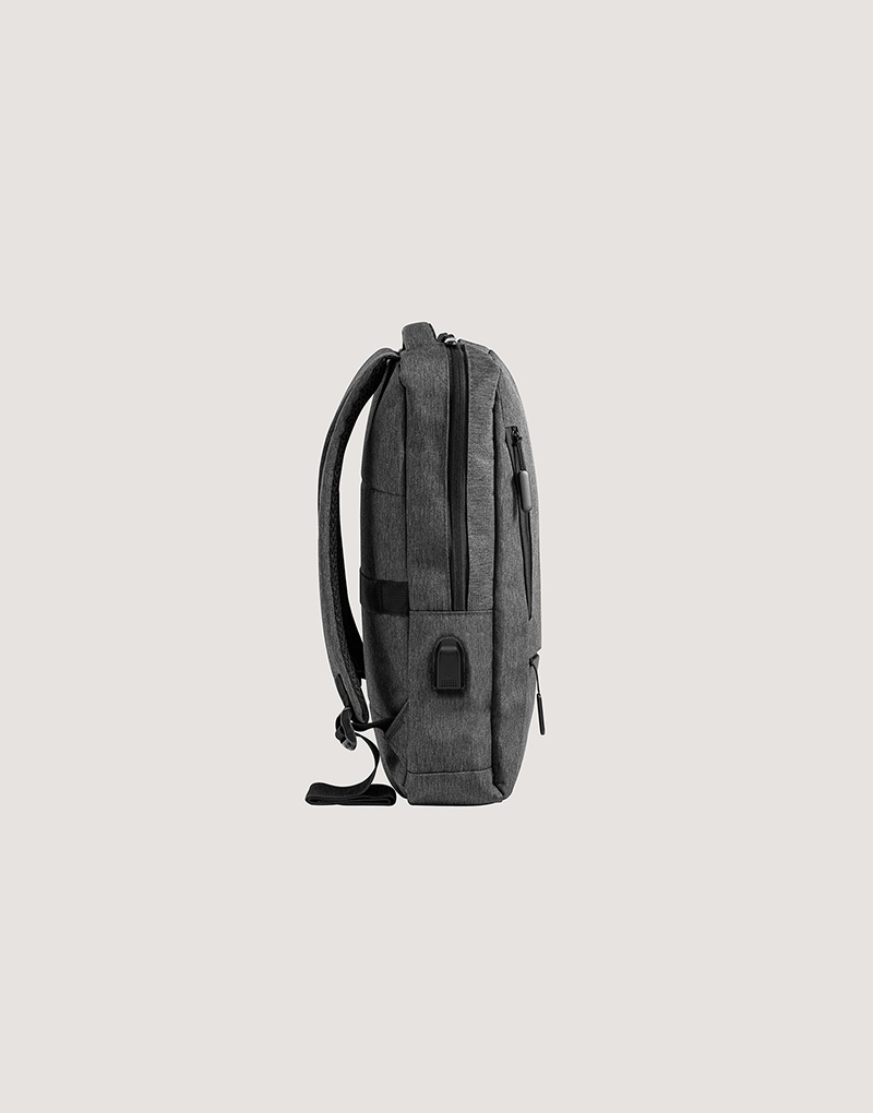 Mochila para notebook em 900D de alta densidade com um compartimento principal com divisória almofadada para notebook 15,6″ e diversos bolsos interiores. Contém ainda 2 bolsos frontais, 1 lateral e entrada USB. Parte posterior e alças almofadadas com banda para transporte em trolley. Capacidade até 14 L.