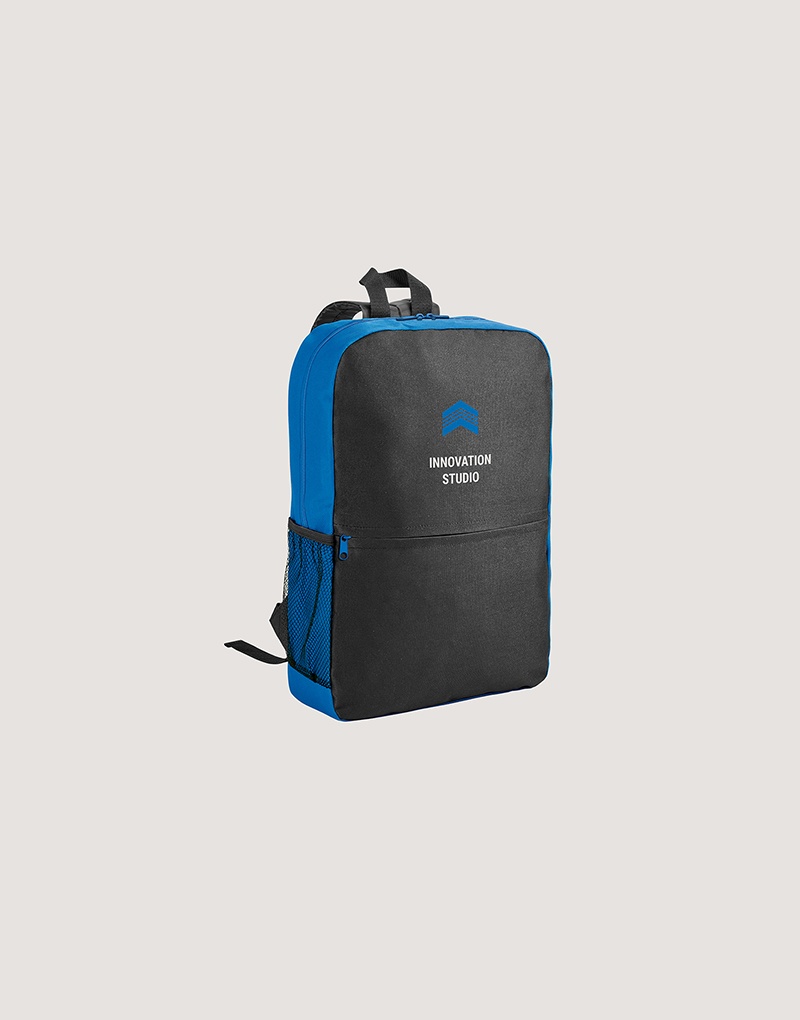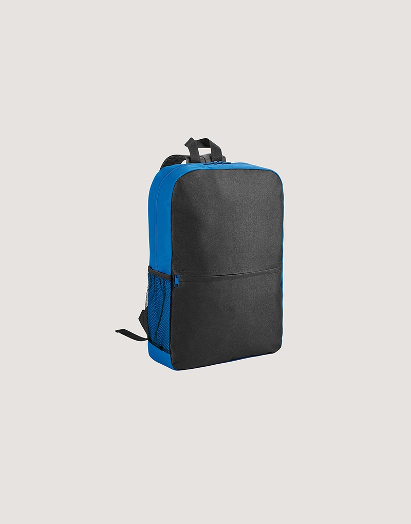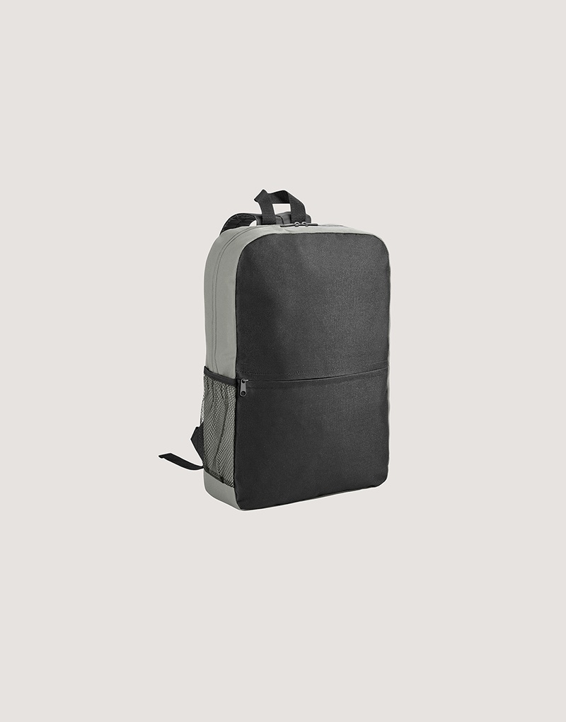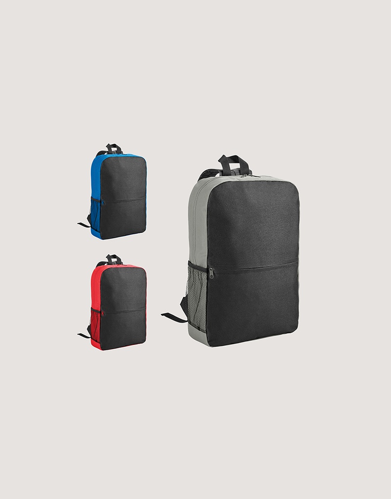 Mochila para notebook em 600D. Compartimento com divisória para computador até 15.6”. Contém bolso frontal com zíper e bolso lateral de tela mesh. Parte posterior e alças almofadadas. Capacidade até 11 L.