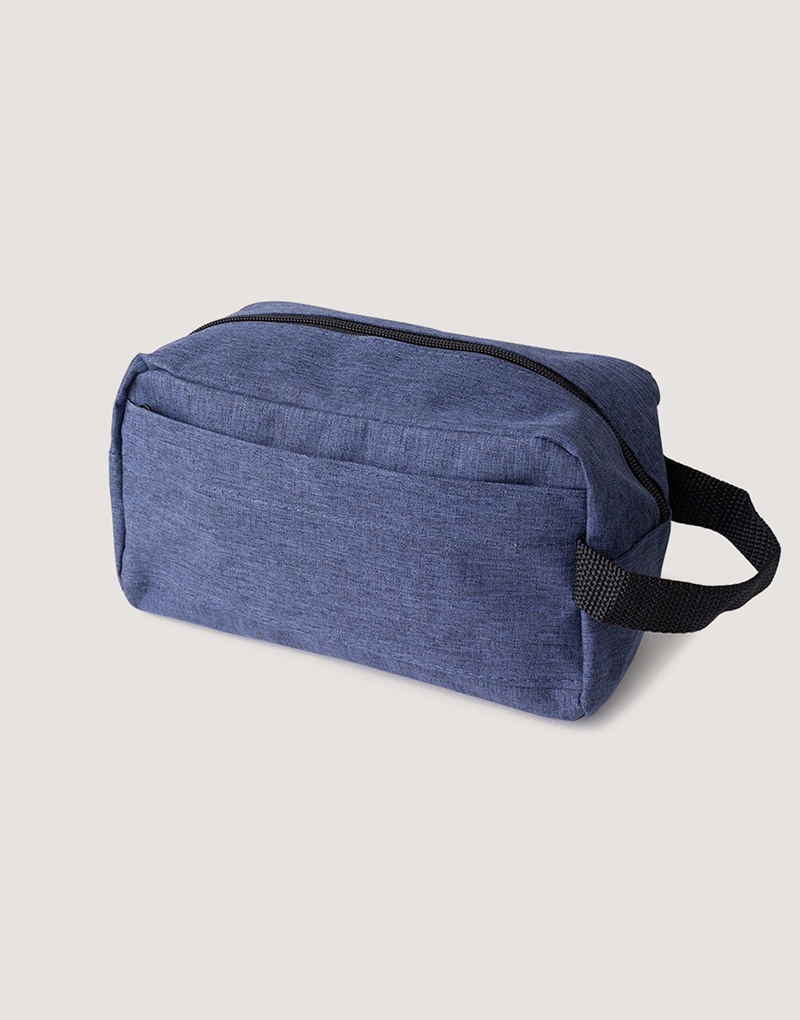 Descrição: Necessaire de nylon com alça lateral. Possui compartimento principal superior e outro frontal.