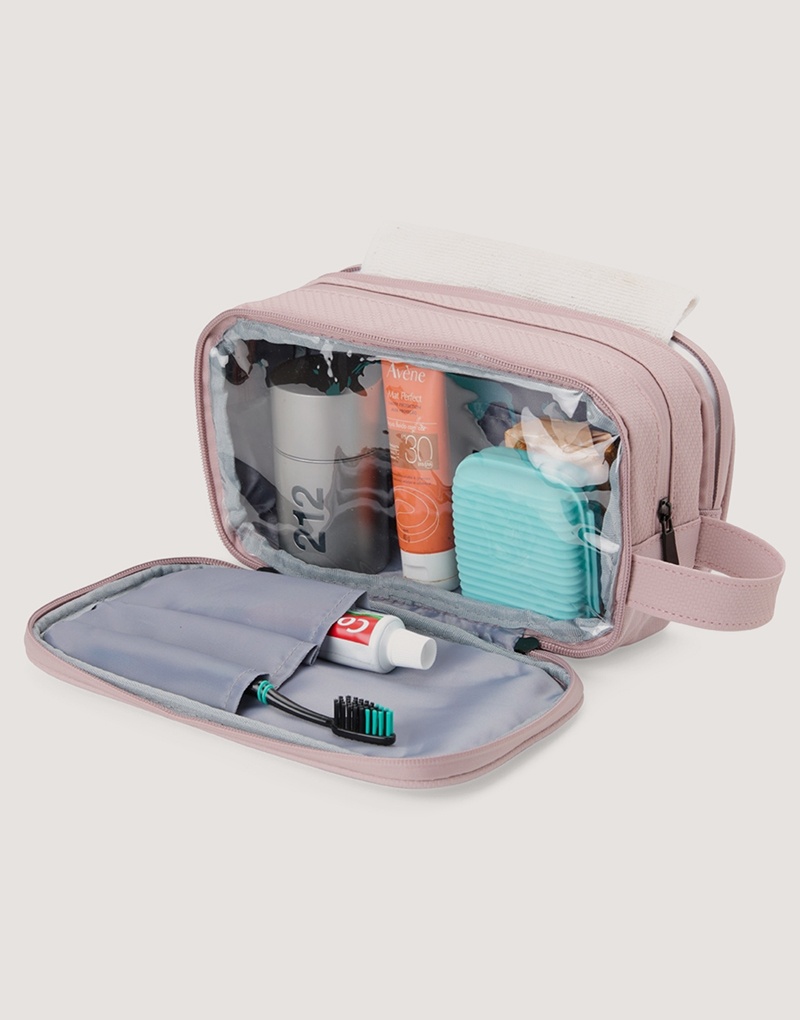 Descrição: Nossa nécessaire em poliéster PVC é ideal para quem valoriza organização e praticidade em um único acessório. Resistente à água, ela conta com três compartimentos: um específico para itens úmidos, como toalhas, outro maior com dois bolsos internos para manter seus pertences bem guardados, e um compartimento com lateral transparente, perfeito para visualizar rapidamente o que está dentro. Além disso, ela conta com três divisórias internas, perfeitas para armazenar lápis, escova de dentes, cremes e outros itens que desejar. Equipada com duas alças, uma de mão para fácil transporte e outra ideal para pendurar chaveiros, oferece também uma etiqueta central para personalização, permitindo adicionar um toque mais exclusivo. Essa nécessaire é tudo o que o seu cliente precisa para manter tudo organizado, seja onde for.