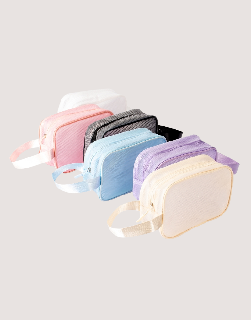 Nécessaire impermeável à água e confeccionado em EVA. Conta com abertura e fechamento em zíper e alça lateral em nylon.