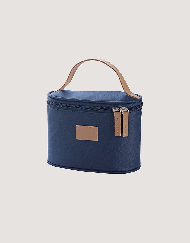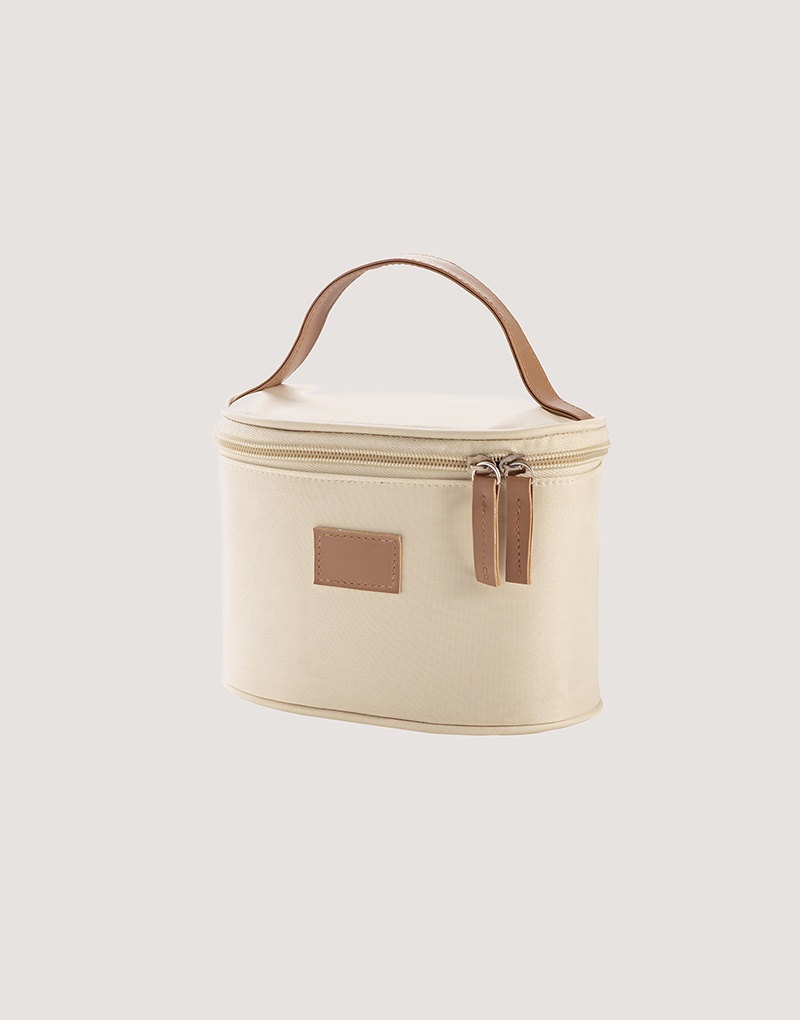 Necessaire em Microfibra com Detalhe em Couro Sintético e Alça de Mão Lateral